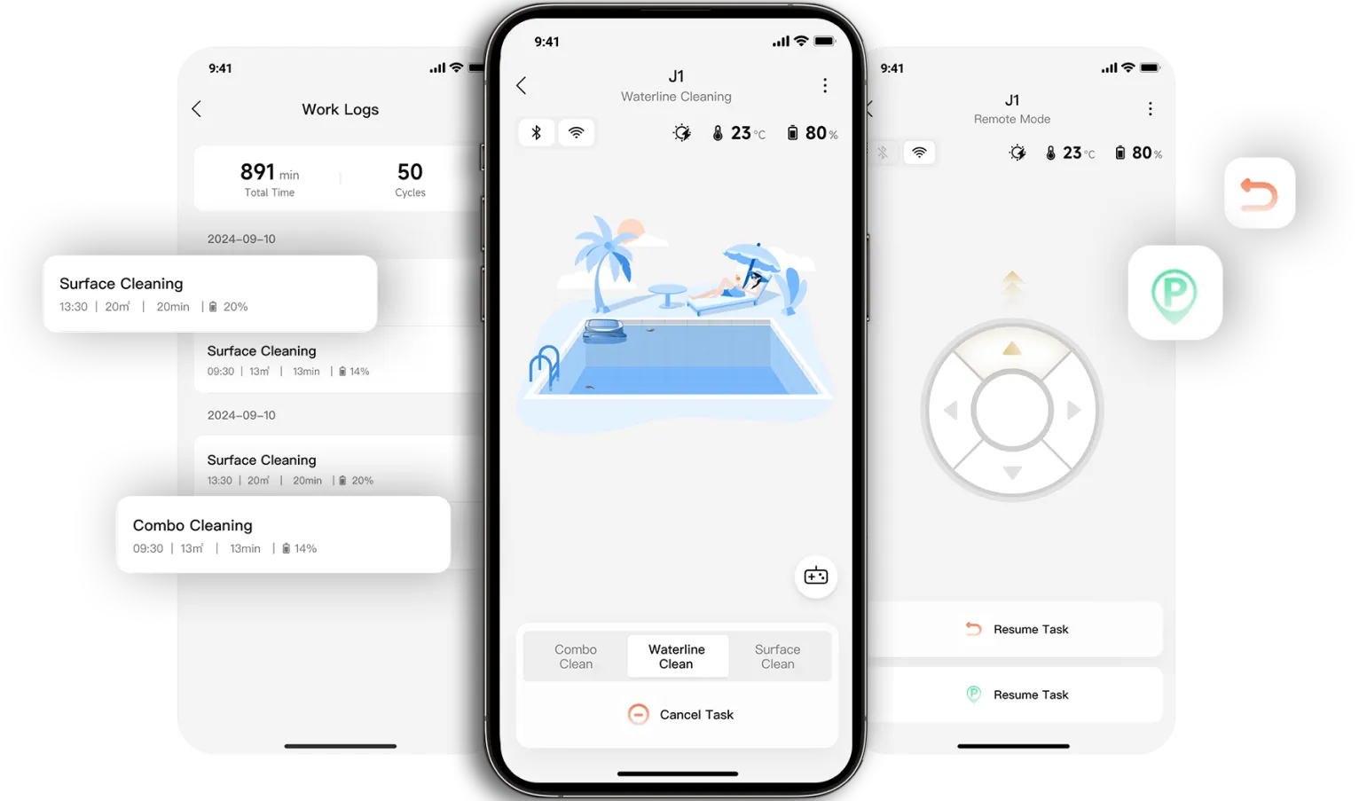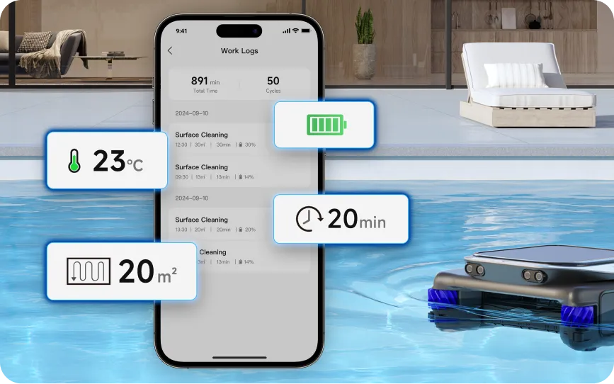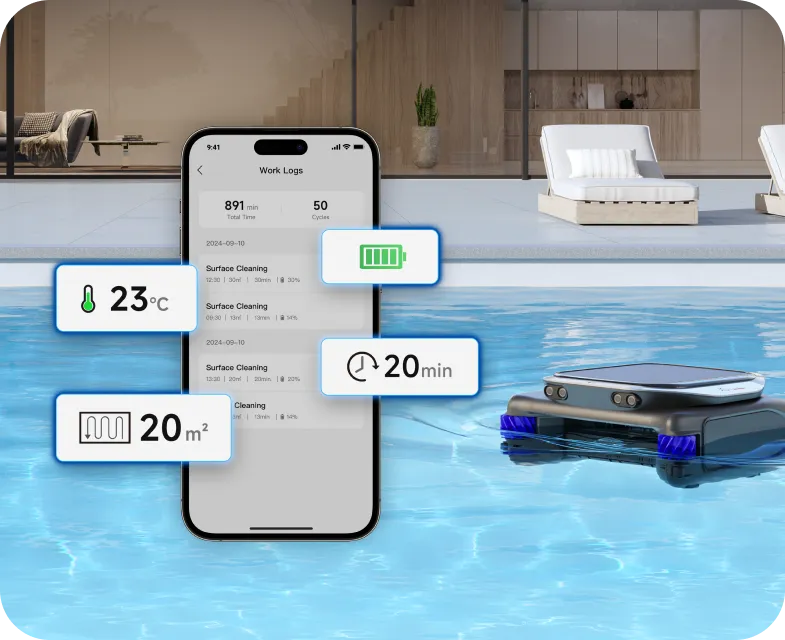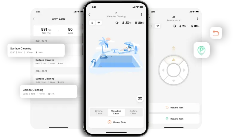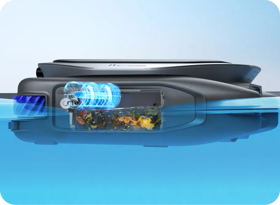 Doté d'un système de nettoyage perfectionné, le J1 couvre la surface de votre piscine à 360°*, en éliminant de manière experte les débris tels que les feuilles, les cheveux, la poussière et les insectes. Sa puissante brosse à double rouleau cible efficacement la ligne d'eau et les coins, éliminant les taches tenaces pour un nettoyage en profondeur - gardant votre piscine impeccable et prête à la baignade à tout moment.