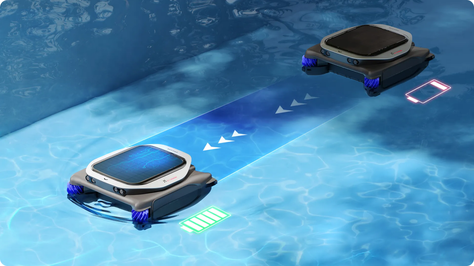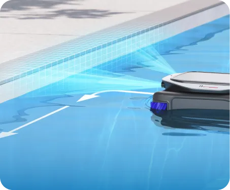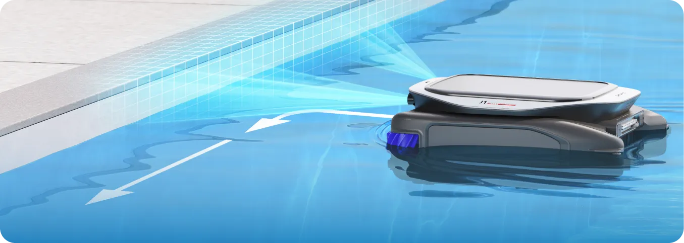 Grâce à la technologie avancée PoolSense™, le J1 détecte les bords de la piscine sur une plus grande plage et ralentit progressivement à l'approche des parois, ce qui garantit un nettoyage sûr et efficace tout en évitant les dommages.