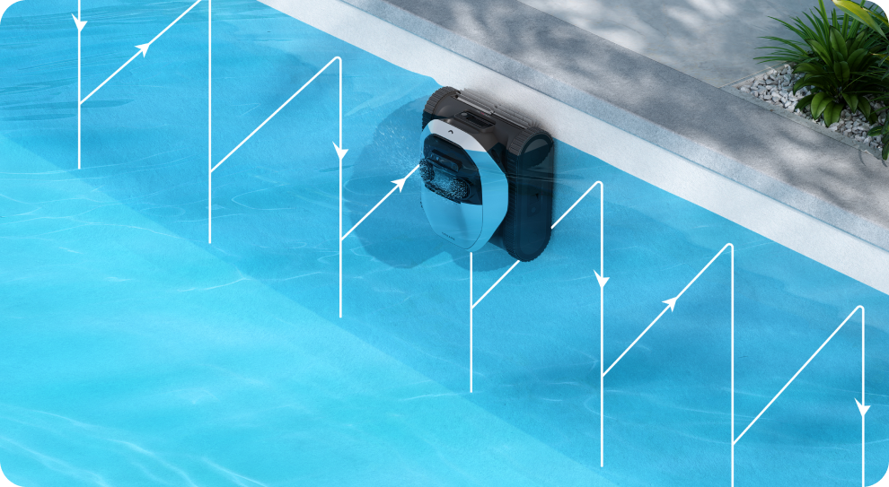 Le Z1 détecte automatiquement la forme de la piscine et délimite intelligemment des zones pour un nettoyage ciblé. Chaque zone est nettoyée selon un schéma adaptatif en forme de S, maximisant ainsi l’efficacité et la précision.