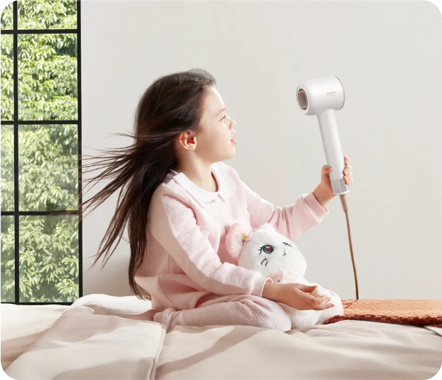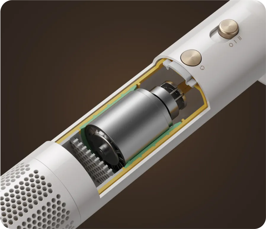 Un puissant moteur sans balai avec une structure verticale optimisée fournit un flux d'air robuste tout en générant un bruit inférieur à 76 dB. Séchez vos cheveux sans vous isoler complètement du monde extérieur, pour un séchage plus agréable.