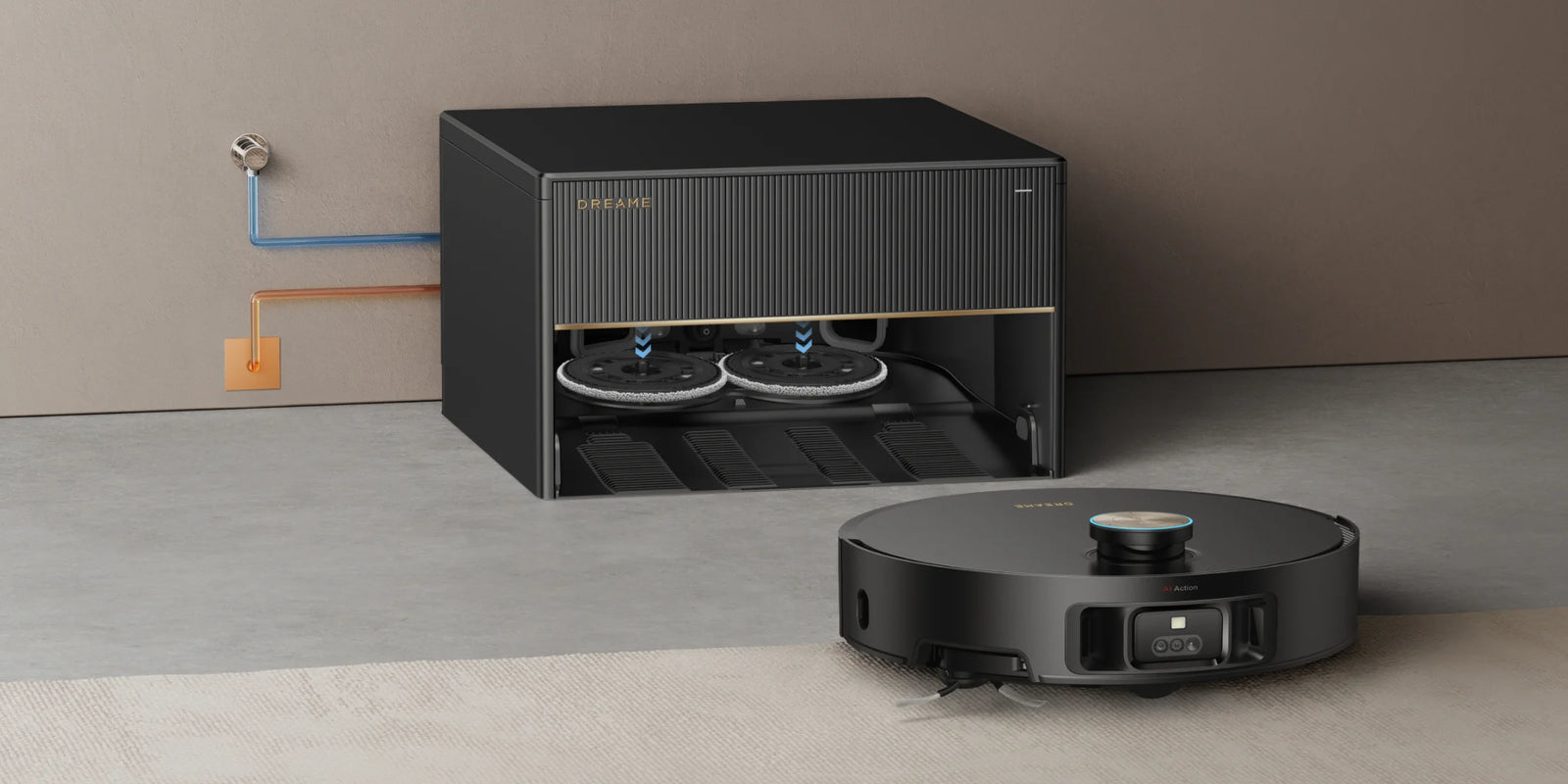 *Mode nettoyage intensif des tapis/moquettes : disponible dans l'application Dreamehome. Après paramétrage, le robot aspirateur réduit sa vitesse et effectue un double nettoyage du tapis/de la moquette.