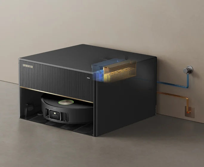 Mesurant seulement 24,9 cm*, la base ultra-compacte du X50 Master permet un nettoyage puissant et autonome de n'importe quel espace. Élégante et esthétique, elle s'intègre parfaitement dans les maisons modernes tout en optimisant les performances de nettoyage.
