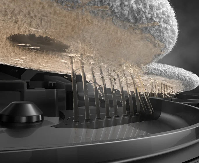 La brosse duo démêlante HyperStream™ élimine les poils sur vos sols, sans avoir à se soucier des nœuds. Son design à double action ramasse les poils de jusqu'à 30 cm de long, pour un nettoyage impeccable. Elle glisse aussi bien sur les sols durs avec ses poils doux en nylon que sur les tapis et moquettes avec son caoutchouc TPU résistant. Elle s'adapte à toutes les surfaces, élimine la saleté et les débris tout en réduisant le bruit. Vos sols sont nettoyés en profondeur et en silence, sans la frustration des poils emmêlés dans les brosses.