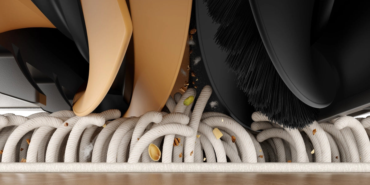 Le X50 Master accède aux coins et recoins difficiles d'accès grâce à la technologie SideReach™, pour éliminer facilement les saletés cachées et garantir un nettoyage à 100 %*. Ses poils résistants et antinœuds s'attaquent aux zones difficiles d'accès, notamment sous les pieds des meubles et dans les recoins. Rien de lui échappe.