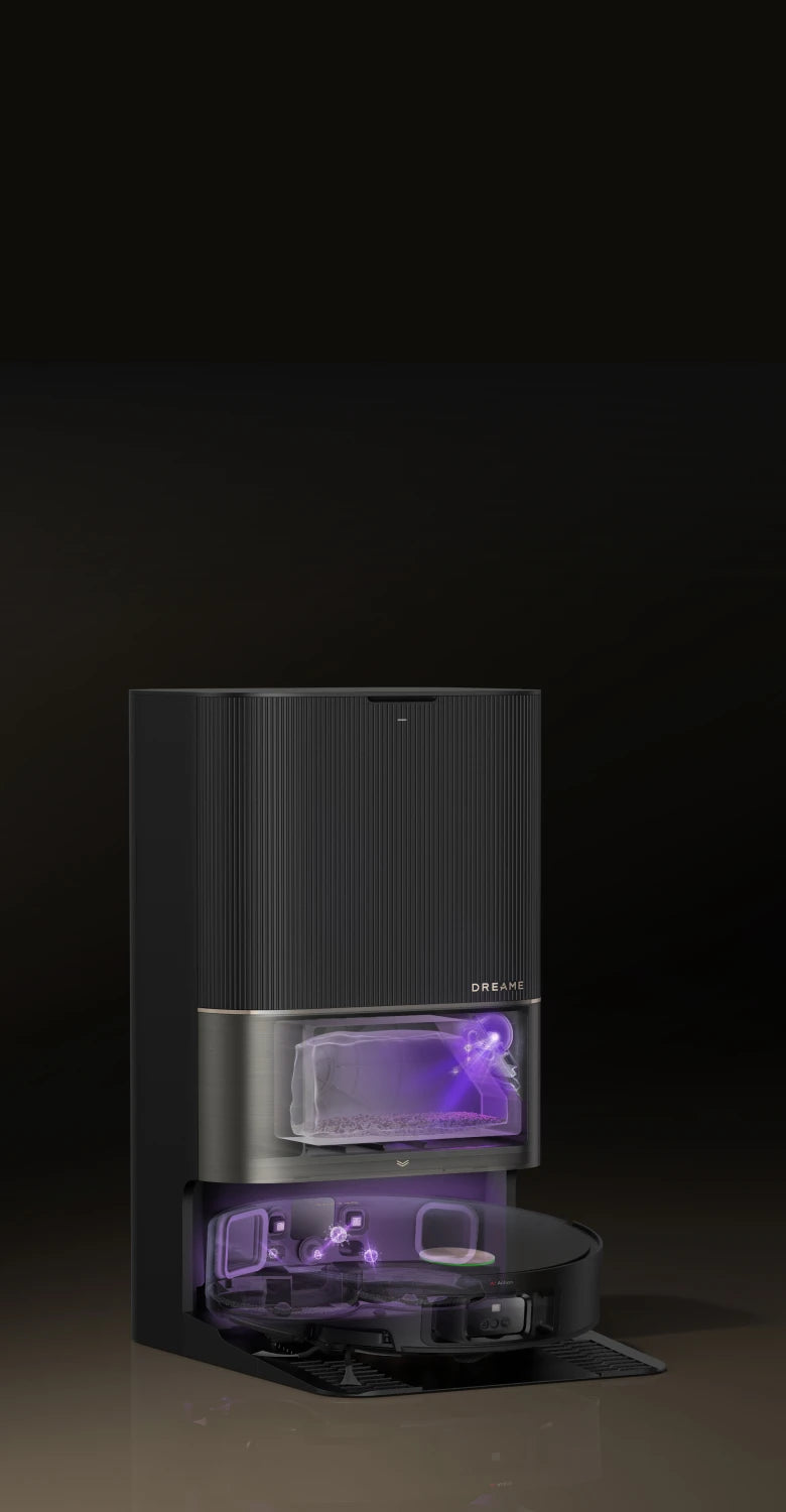 La technologie d'élimination des bactéries, équipée de deux lampes UV, vise à éradiquer les bactéries présentes dans les serpillières et le sac à poussière du X50 Ultra Complete. Après le nettoyage automatique et le séchage à l'air chaud, la serpillière affiche un taux d'élimination des bactéries de 99 %*, assurant ainsi une finition impeccable. La lumière UV au sein de l'ouverture du sac à poussière améliore encore le vidage automatique, permettant une réduction de 99,98 % des bactéries*.