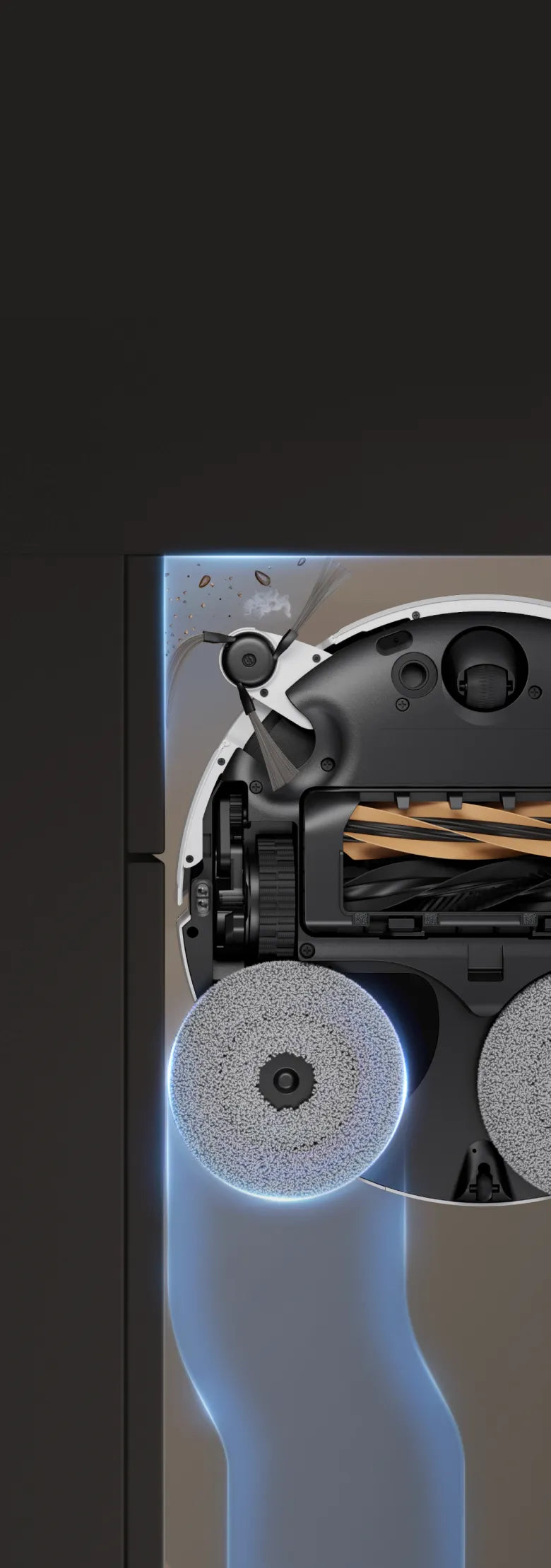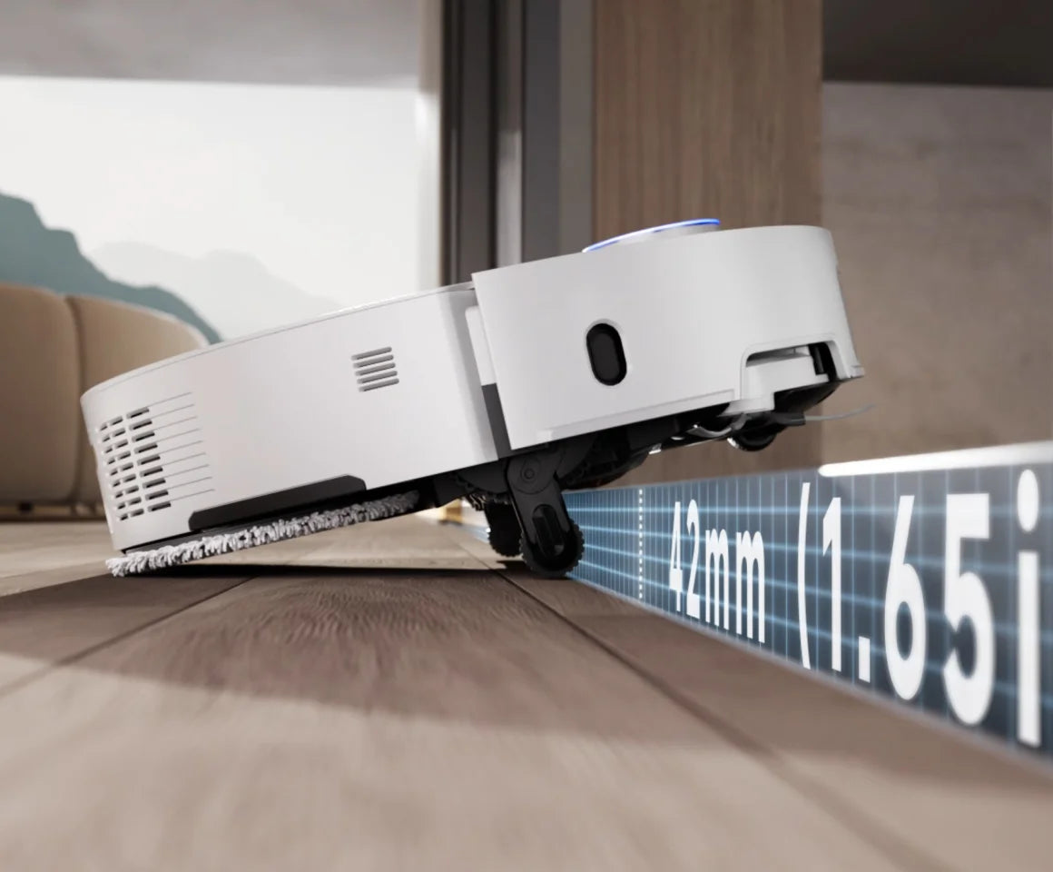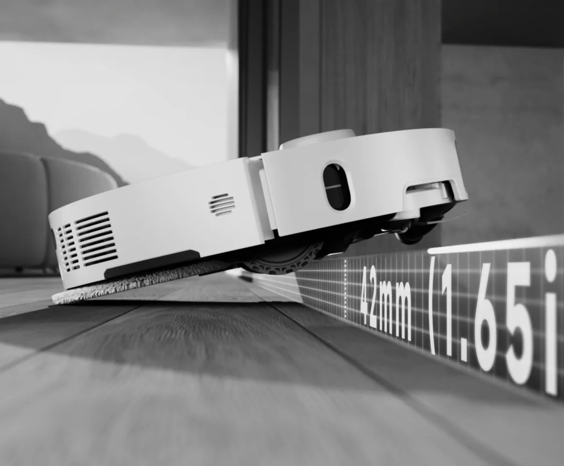 La technologie MopExtend™ RoboSwing atteint les endroits inaccessibles pour les autres aspirateurs, en glissant facilement sous les meubles et dans les coins étroits. S'étendant jusqu'à 4 cm* de profondeur, elle s'attaque aux débris cachés pour un nettoyage efficace dans les espaces difficiles d'accès.