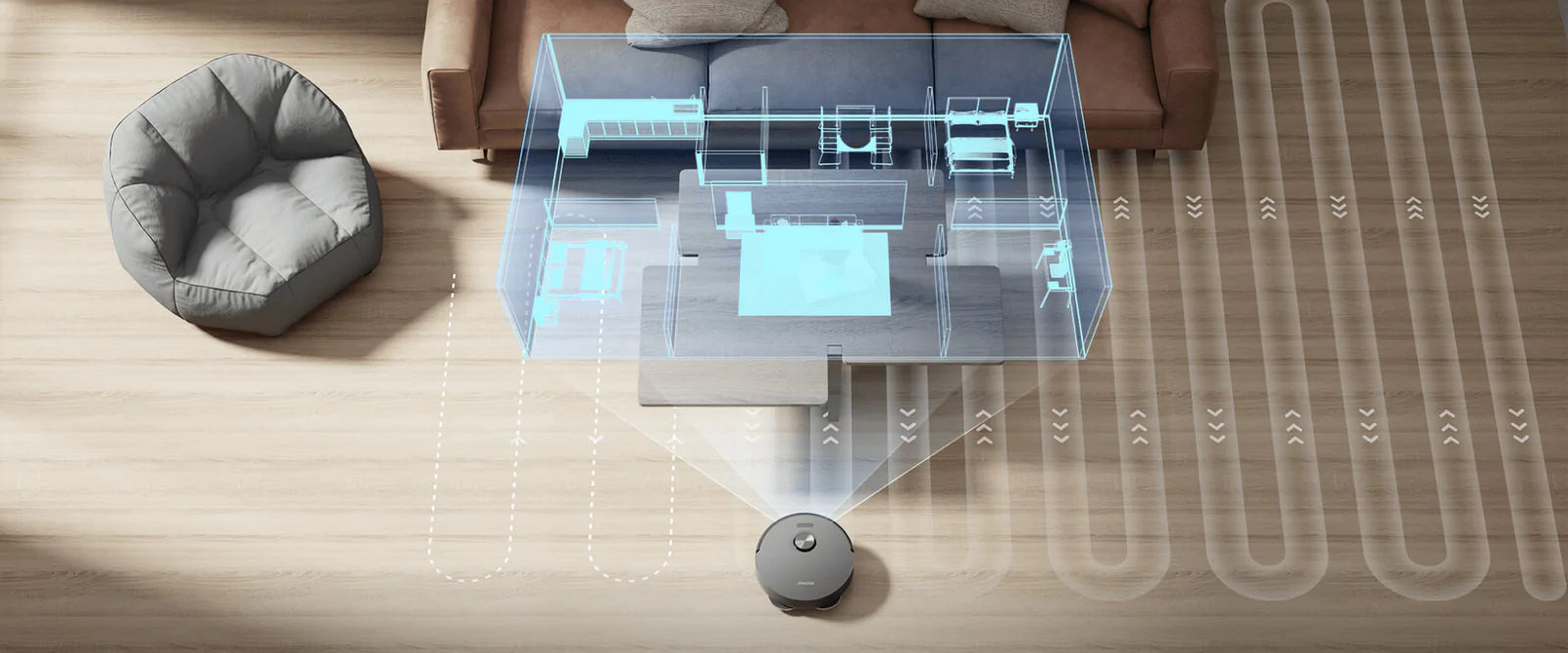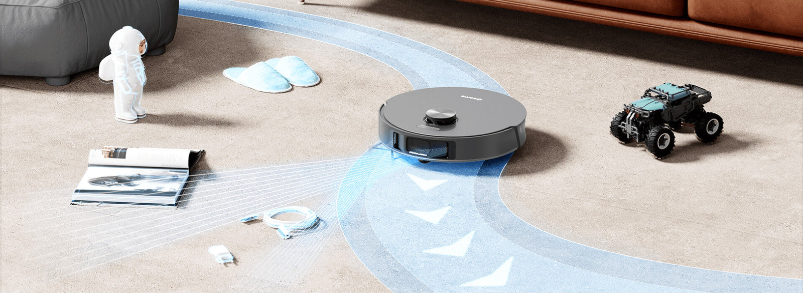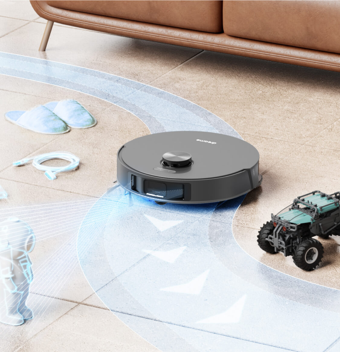 Il détecte avec précision les tapis et les moquettes afin de relever automatiquement les serpillières et d'augmenter l'aspiration pour un nettoyage en profondeur qui élimine facilement la saleté, la poussière et les débris gênants. La technologie ultrasonique identifie avec précision les tapis et les moquettes. Il relève ses serpillières jusqu'à 7 mm* pour garder les tapis et les moquettes au sec et éviter de les traîner sur des sols propres lors du retour à la base.