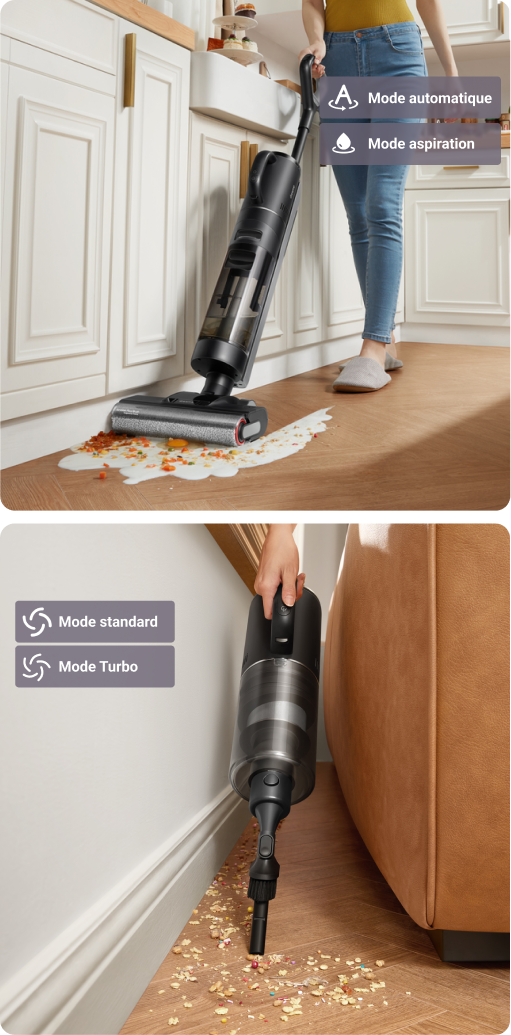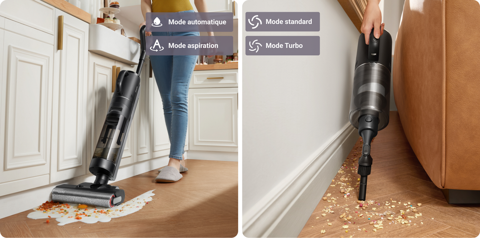 Le mode Automatique détecte le type de saleté et adapte les réglages, pour un nettoyage plus en profondeur.