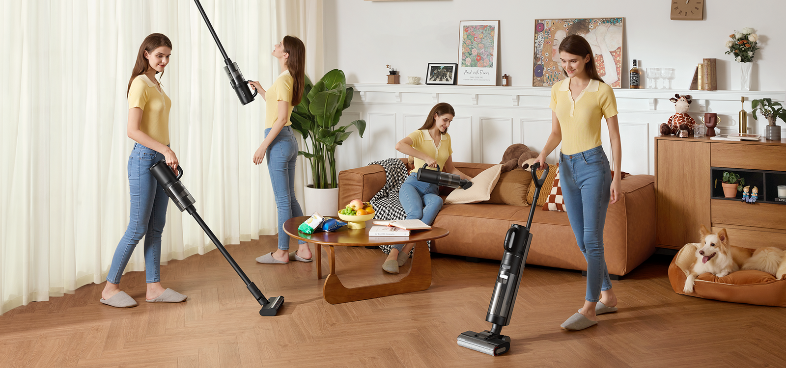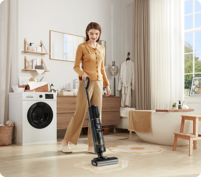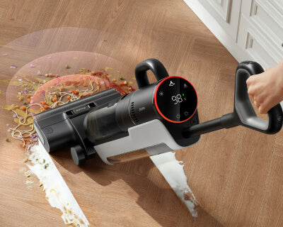 Peu importe la saleté, le H12 Dual s'en occupe. Grâce à la puissance d'aspiration de 16 000 Pa, à la brosse rotative de 520 tr/min et au racleur intégré, votre aspirateur et vos sols restent propres, sans poils ni cheveux.
