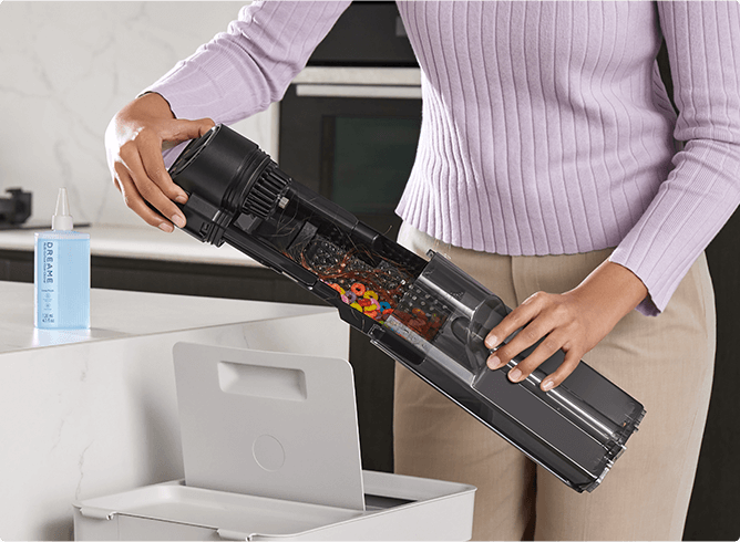 Le récipient à filtre facile à vider sépare les déchets solides des liquides, ce qui rend le nettoyage final rapide et pratique.