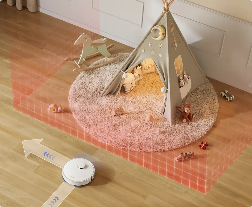 *Pour éviter de les mouiller, nous vous suggérons de configurer le robot via l'application Dreame pour qu'il évite les tapis/moquettes à poils moyens et longs.