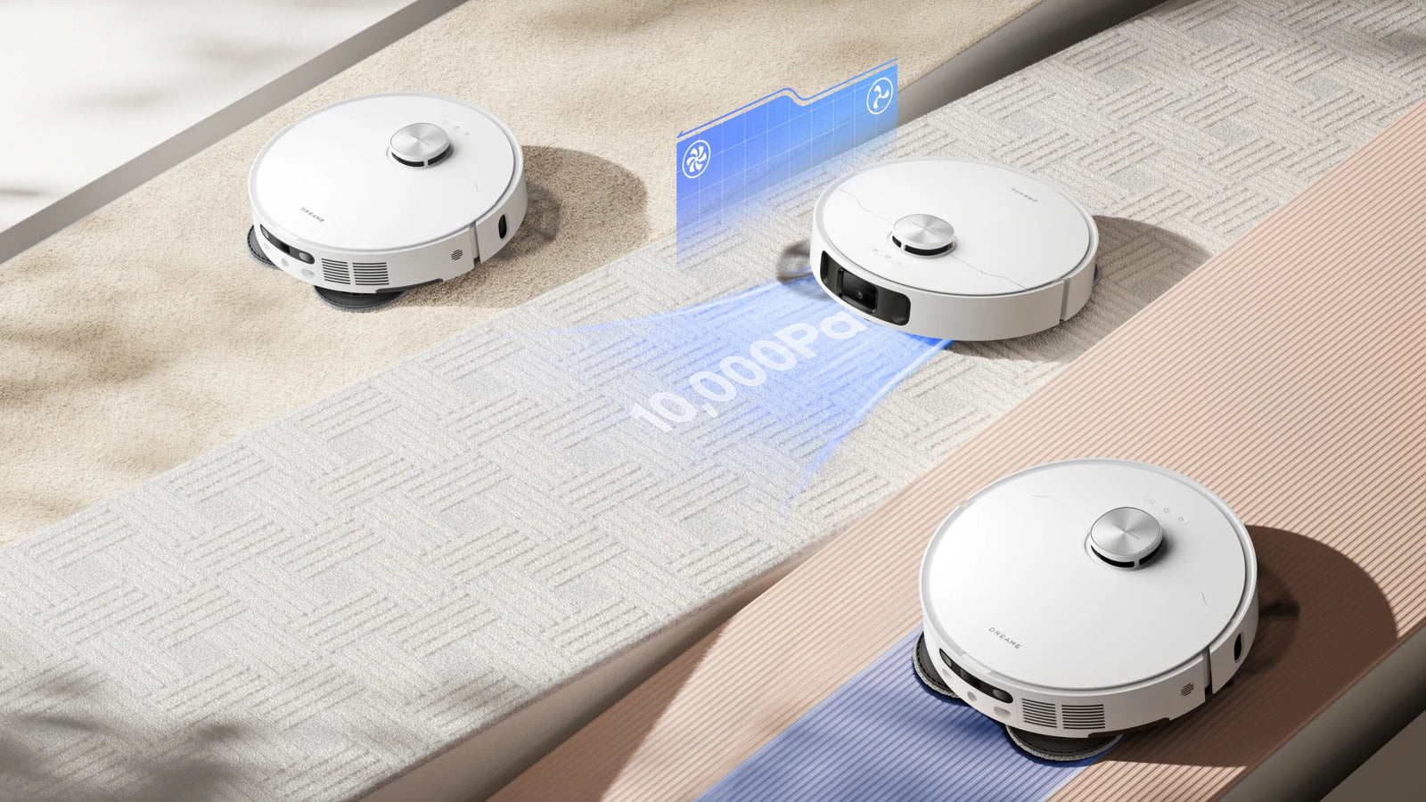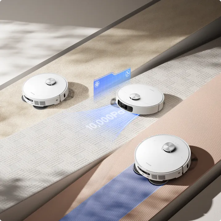 Le robot L10s Ultra Gen 2 offre plusieurs modes de nettoyage des tapis et moquettes : levage de serpillière, nettoyage intensif des tapis/moquettes avec aspiration optimisée, aspiration et lavage des sols, évitement des tapis et moquettes, et nettoyage en priorité des tapis et moquettes. Sélectionnez la méthode optimale pour chaque tapis et moquette de votre maison.