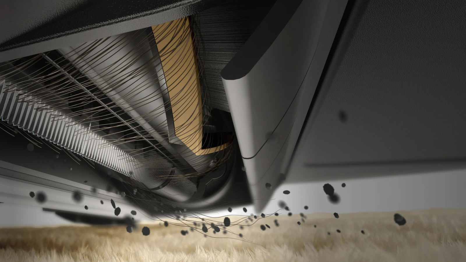 Les poils et cheveux emmêlés sont automatiquement coupés par la brosse TriCut et envoyés directement dans le bac à poussière, ce qui vous permet de gagner du temps et d'éviter un nettoyage manuel.