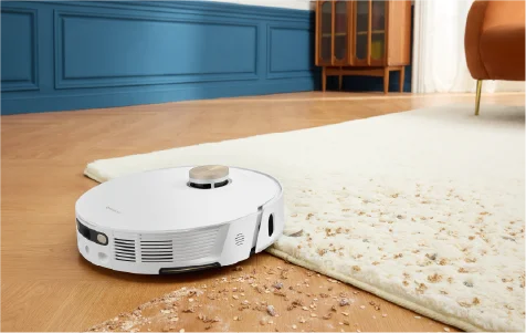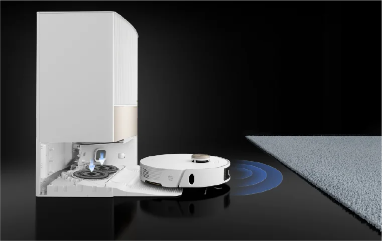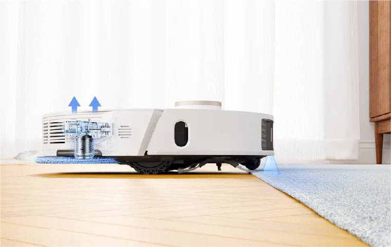 La technologie avancée de reconnaissance de moquette par ultrasons permet au L20 Ultra d'identifier les moquettes et de revenir à la base pour détacher ses serpillères une fois le réglage effectué* et maintenir les moquettes propres et sèches.Revenir à une augmentation d'aspiration propre et intelligente permet d'aspirer en profondeur les moquettes pour éliminer la poussière et les débris incrustés.