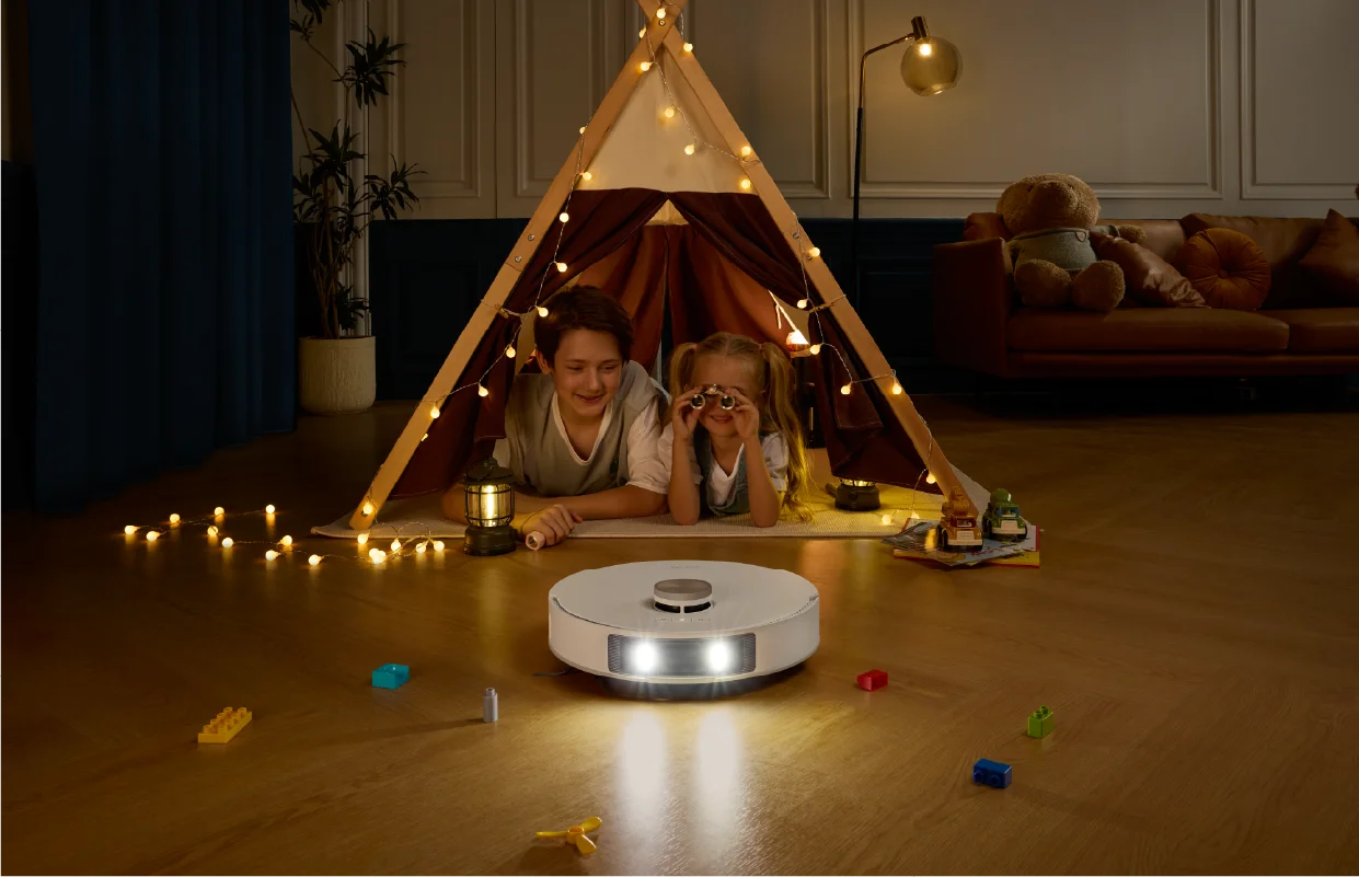 À l'aide d'une LED intégrée, votre robot identifie les obstacles et nettoie efficacement dans les espaces tamisés et les pièces sombres.