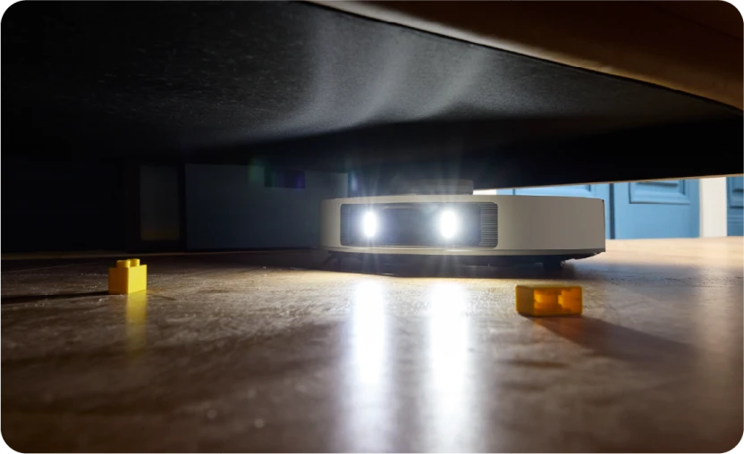 Le système de navigation intelligente Pathfinder™, AI action et le système d'évitement d'obstacles à éclairage 3D s'associent pour mémoriser votre maison, identifier 55 types d'obstacles différents et planifier un nettoyage plus efficace.