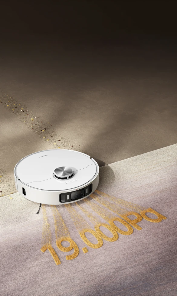 Profitez d'une mise à niveau polyvalente pour une maison plus propre. Grâce à une aspiration puissante de 19 000 Pa*, à une brosse principale en caoutchouc relevable et à une brosse TriCut, le robot aspirateur élimine les petites particules de poussière, les gros débris des tapis/moquettes et des sols et réduit la formation de nœuds. Grâce au lavage automatique des serpillières avec de l'eau chaude à 75 °C* et à la plaque de lavage avec nettoyage automatique avancée, l'entretien post-lavage est grandement facilité.
