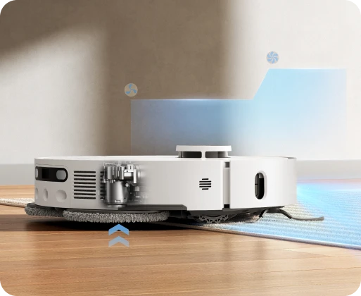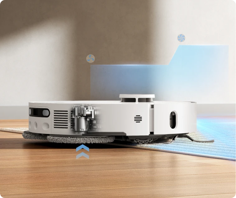 Appréciez l'aspiration haut de gamme qui garde les tapis à poils courts au sec. Les serpillières se soulèvent automatiquement jusqu'à 10,5 mm*. Ainsi, les tapis ne sont pas au contact de l'humidité. Sélectionnez le mode Aspiration optimisée dans l'application Dreamehome pour ramasser les débris collés sur les tapis/moquettes, pour un nettoyage puissant et des résultats impeccables.