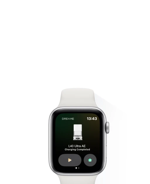 Profitez d'une connectivité fluide à portée de main. Démarrez ou interrompez le nettoyage via votre Apple Watch.