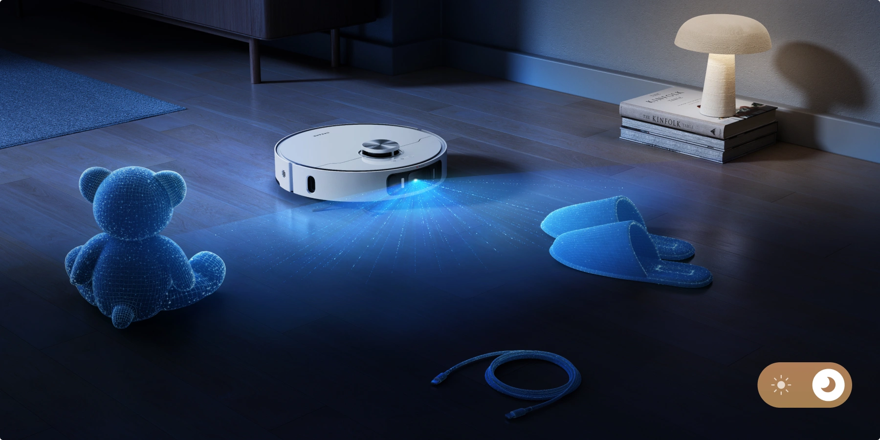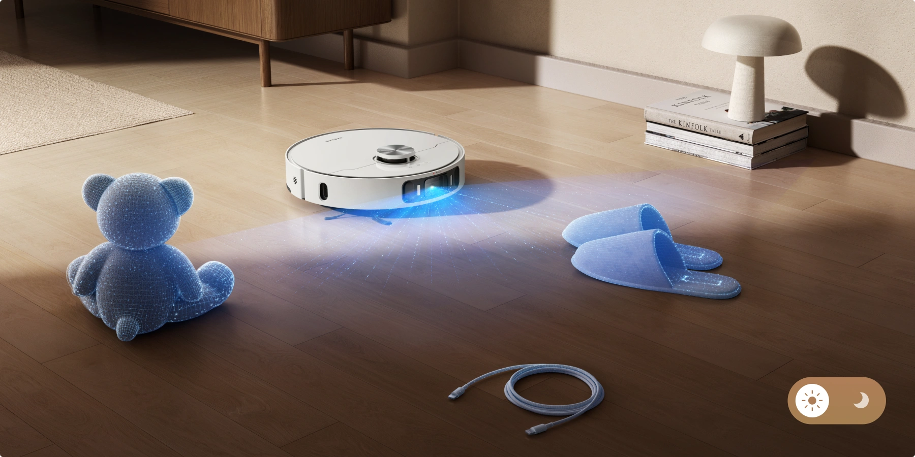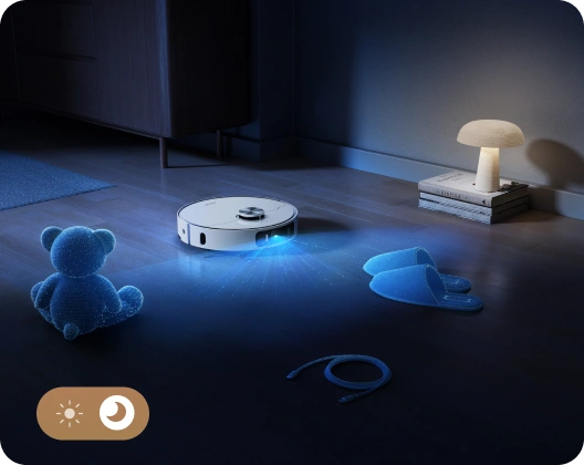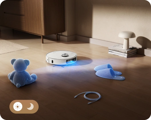 Grâce à l'IA et à l'éclairage 3D, le robot aspirateur parcourt votre maison en toute simplicité en s'adaptant à votre espace de vie et en évitant de nombreux obstacles, comme des chaussures, des jouets et bien plus encore, pour une navigation sans heurt.