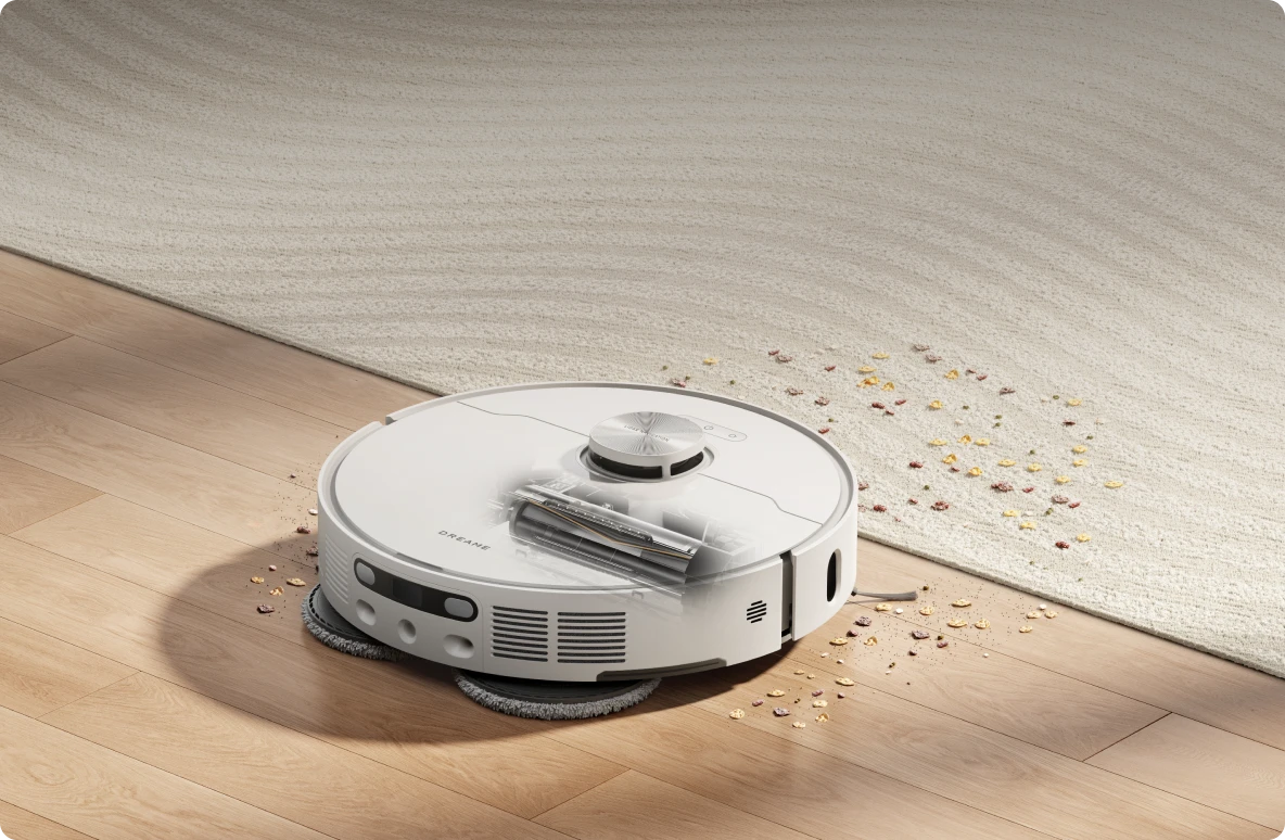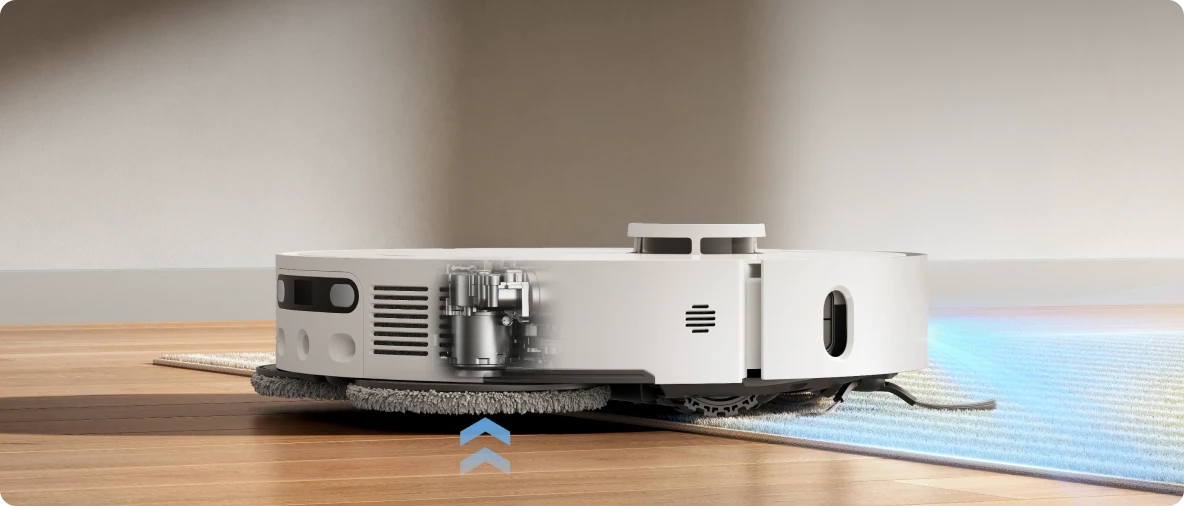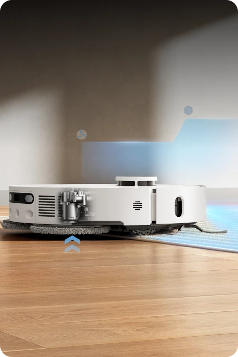 Appréciez l'aspiration haut de gamme qui garde les tapis à poils courts au sec. Les serpillières se soulèvent automatiquement jusqu'à 10,5 mm*. Ainsi, les tapis ne sont pas au contact de l'humidité. Sélectionnez le mode Aspiration optimisée dans l'application Dreamehome pour ramasser les débris collés sur les tapis/moquettes, pour un nettoyage puissant et des résultats impeccables.