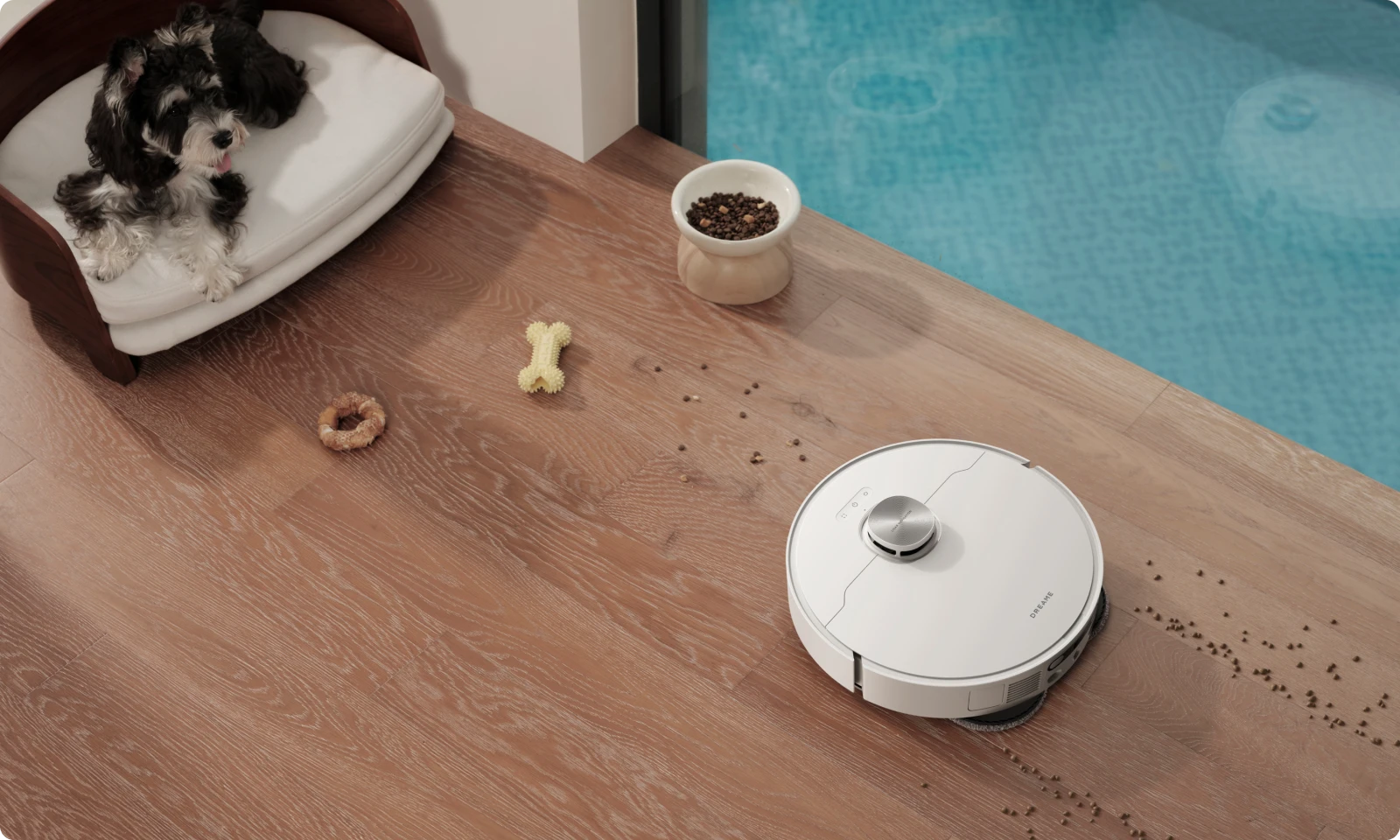Personnalisez les réglages en fonction de votre espace de vie dans l'application Dreamehome. Utilisez le mode Nettoyage intensif des tapis/moquettes afin de passer deux fois sur les sols* à vitesse réduite, pour un nettoyage plus minutieux. Sélectionnez le mode Nettoyage des tapis/moquettes pour passer l'aspirateur sur ces surfaces en premier, afin d'éviter qu'elles ne deviennent trop humides et d'empêcher la dispersion des saletés dans votre intérieur.