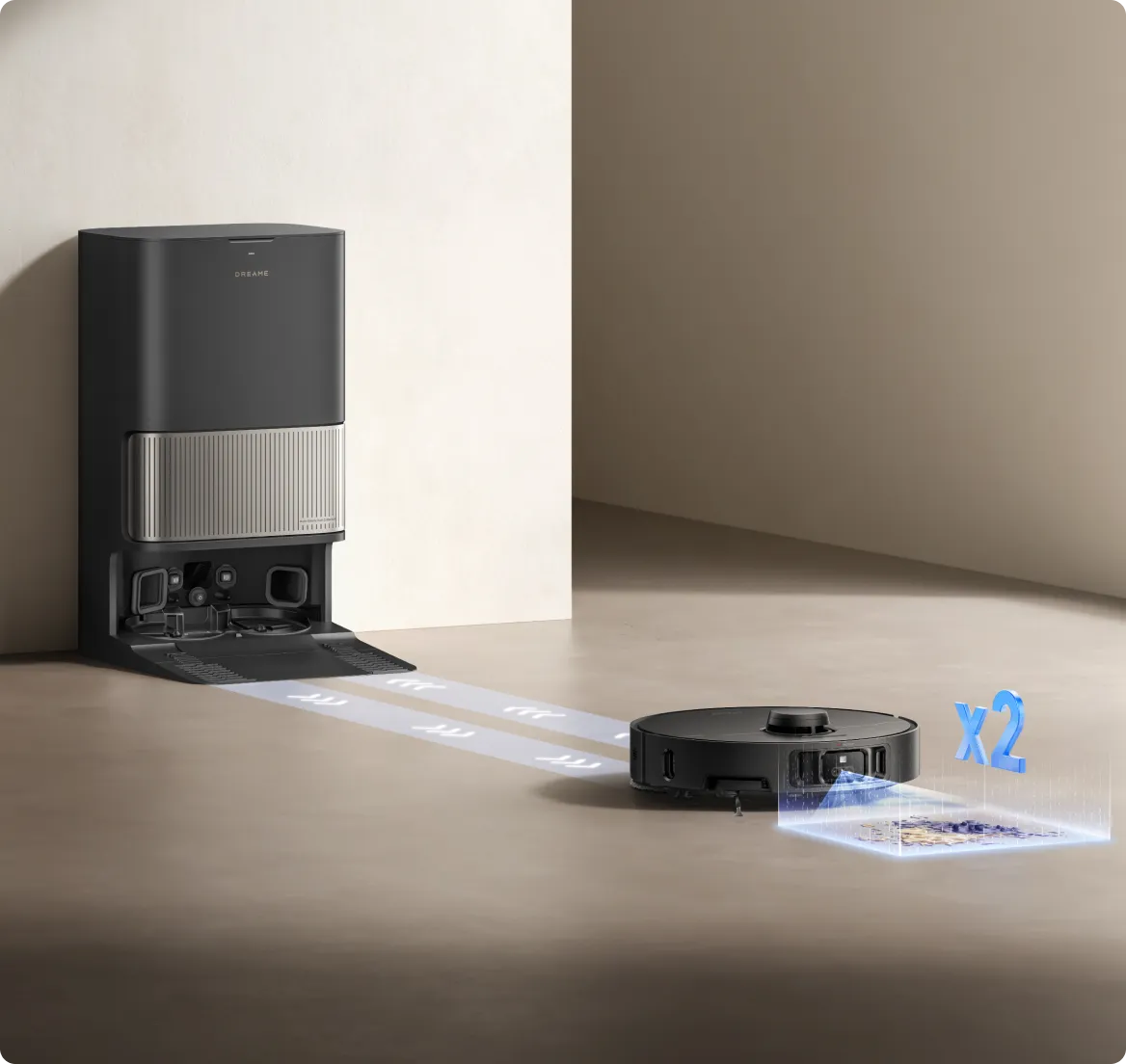 * Mode nettoyage intensif des tapis/moquettes : une fois activé, le robot aspirateur ralentira et nettoiera les tapis/les moquettes deux fois ; Mode aspiration optimisée : dès que le robot détecte un tapis ou une moquette, il active la puissance d'aspiration maximale. Notez que cette fonction n'est pas disponible en mode d'aspiration silencieux. Vous pouvez configurer les deux modes dans l'application Dreamehome.