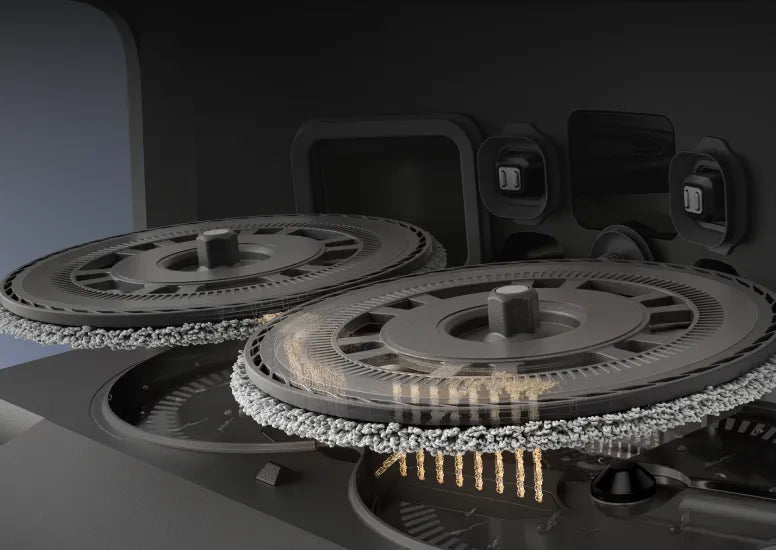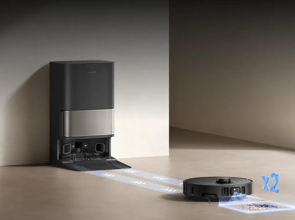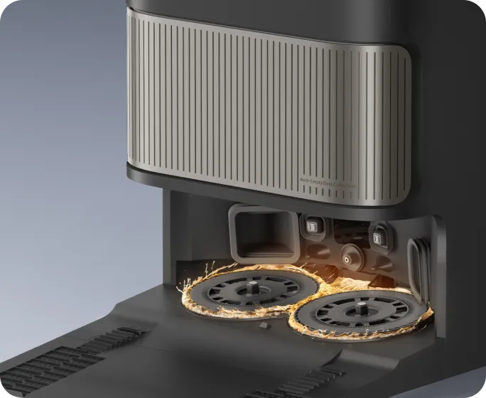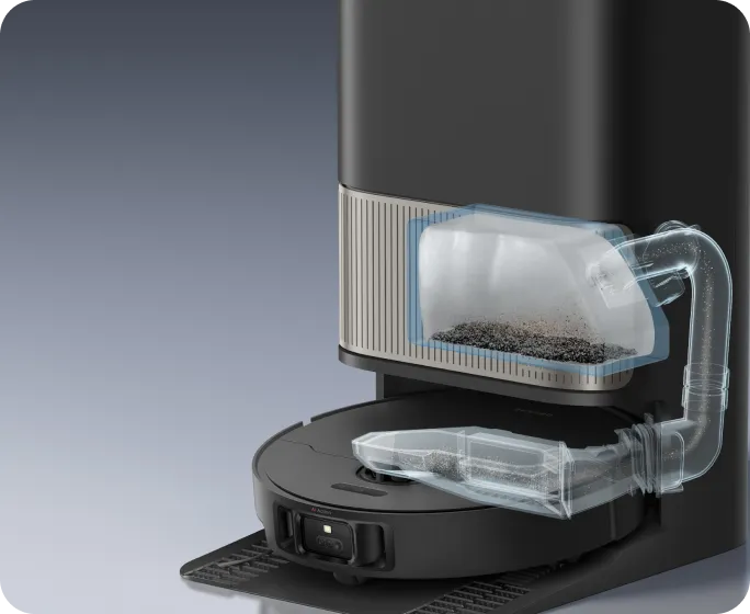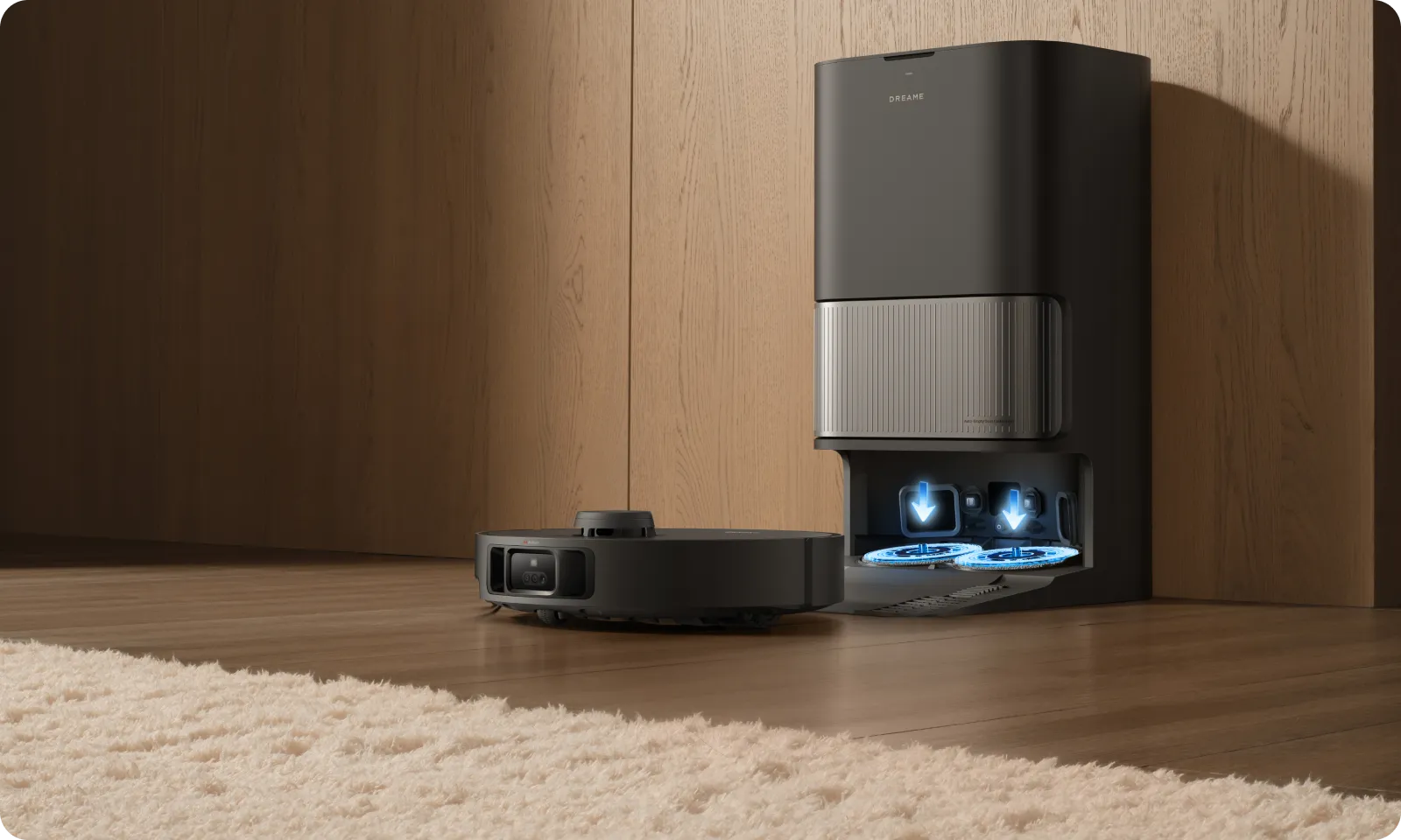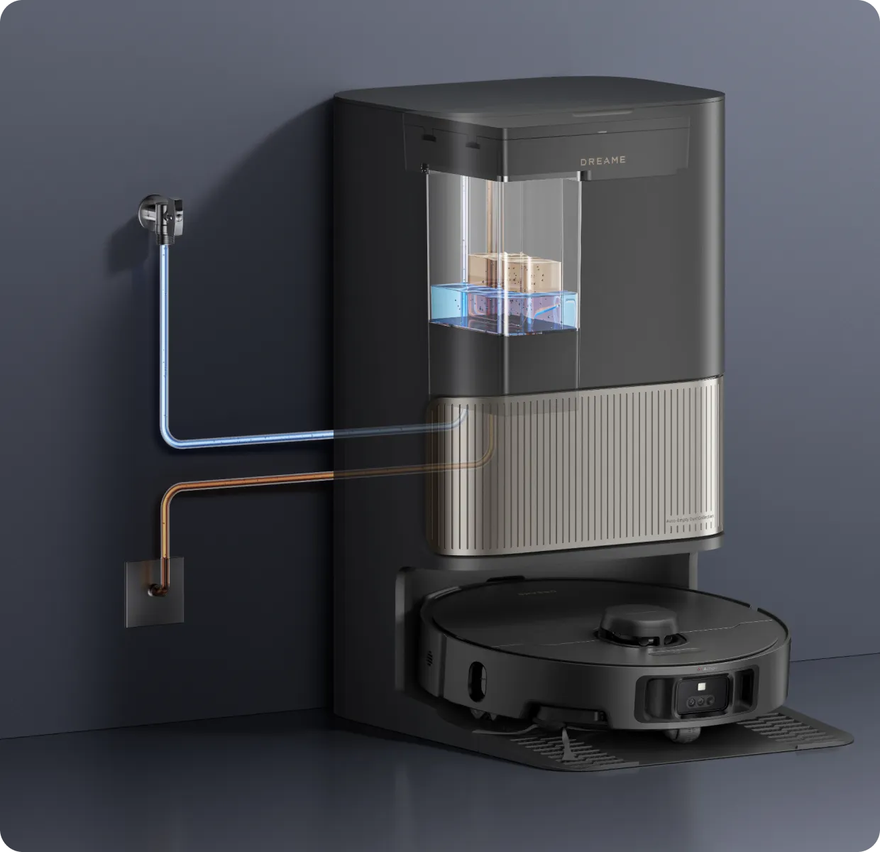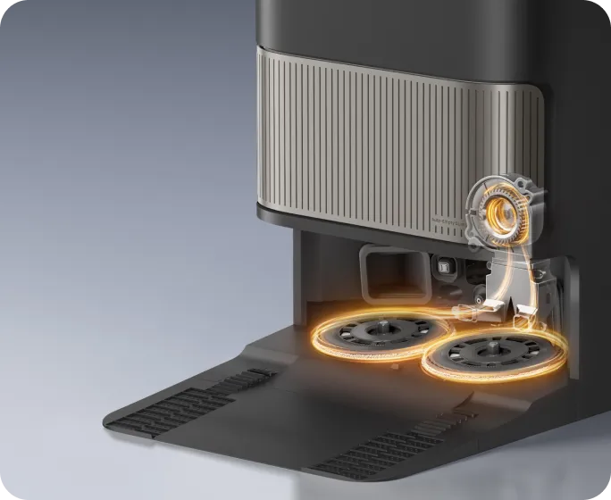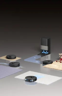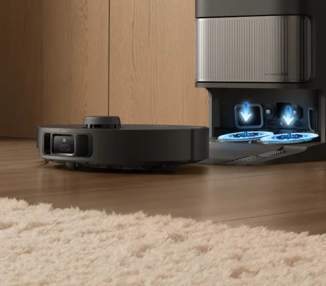 Après le lavage des sols, notre base utilise son capteur de couleur pour évaluer le degré de saleté de l'eau résiduelle. Si elle est trouble, le robot aspirateur relave les serpillières avant le deuxième cycle de nettoyage, afin que vos sols soient toujours lavés avec des serpillières propres.