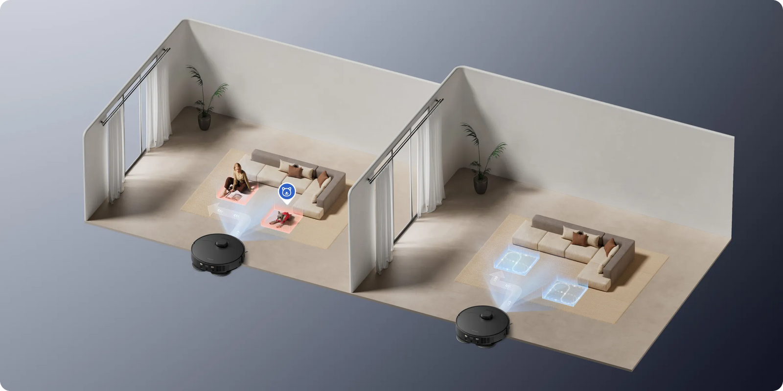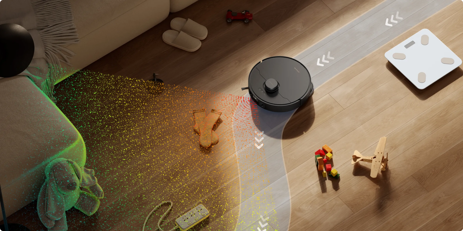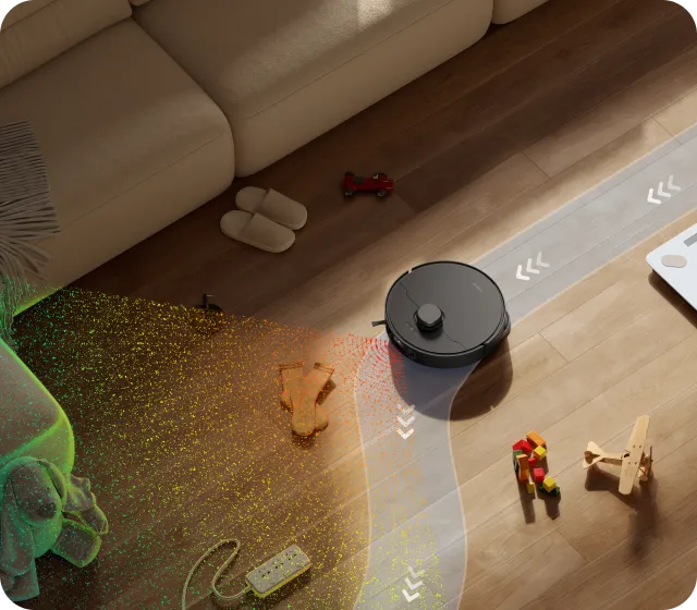 Le L40s Pro Ultra reconnaît et évite intelligemment les objets domestiques du quotidien*. Les LED intégrées éclairent la trajectoire du robot pour des manœuvres précises, même en cas de faible luminosité.