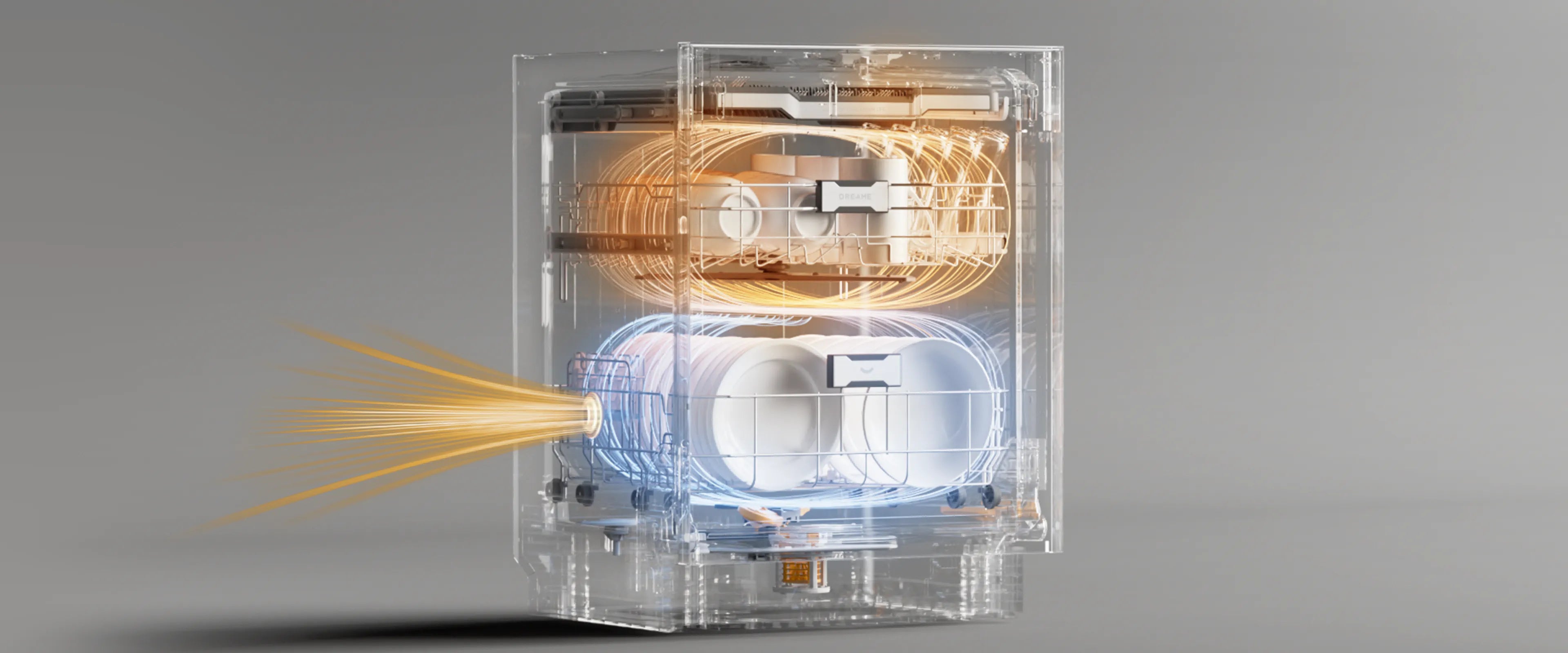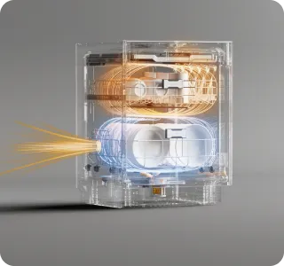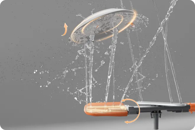 Contrairement aux bras standards qui tournent selon un angle fixe et dépendent des projections d'eau pour atteindre certaines zones, le bras de lavage Dreame s’oriente dynamiquement à 25° à chaque extrémité. Grâce à sa technologie de direction active, il oriente les jets à haute pression avec précision sur chaque pièce de vaisselle, atteignant les « zones d’ombre » comme les bords du panier ou la vaisselle empilée que les modèles conventionnels ont souvent tendance à négliger.