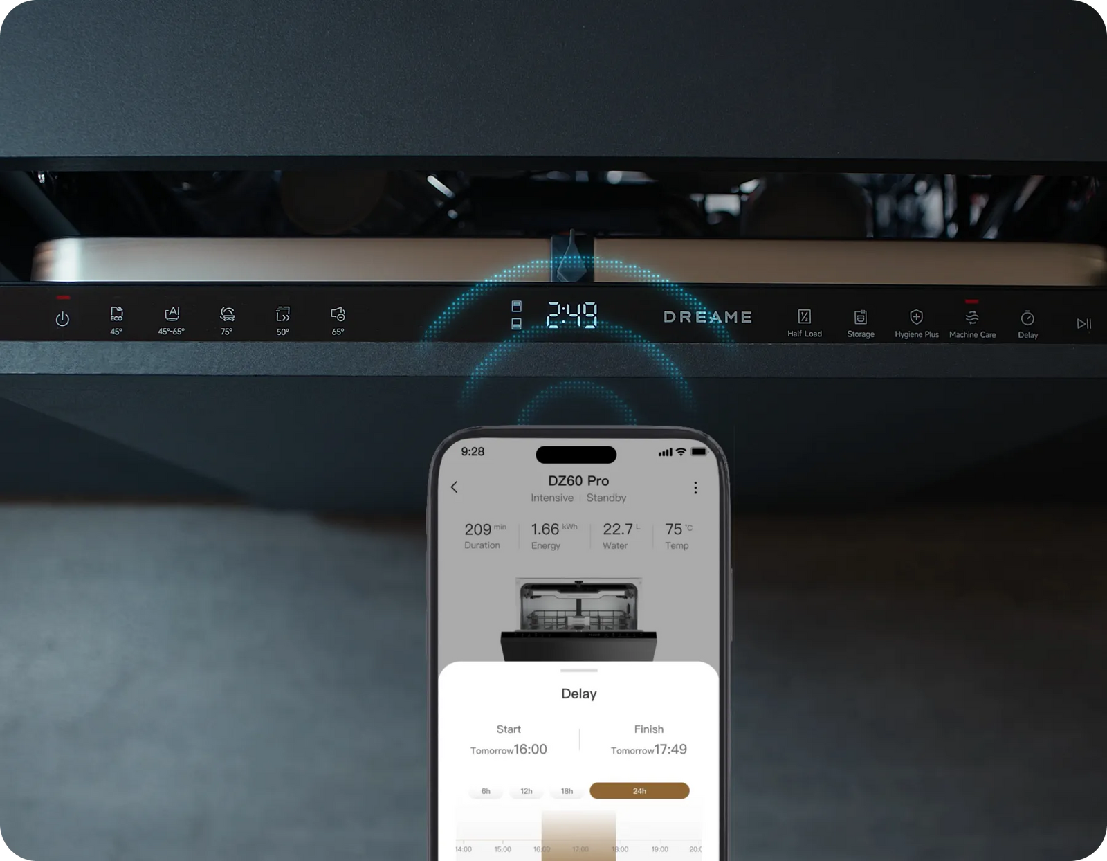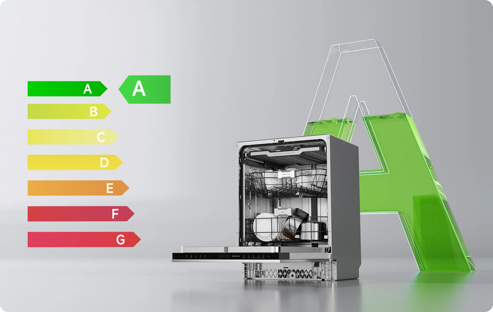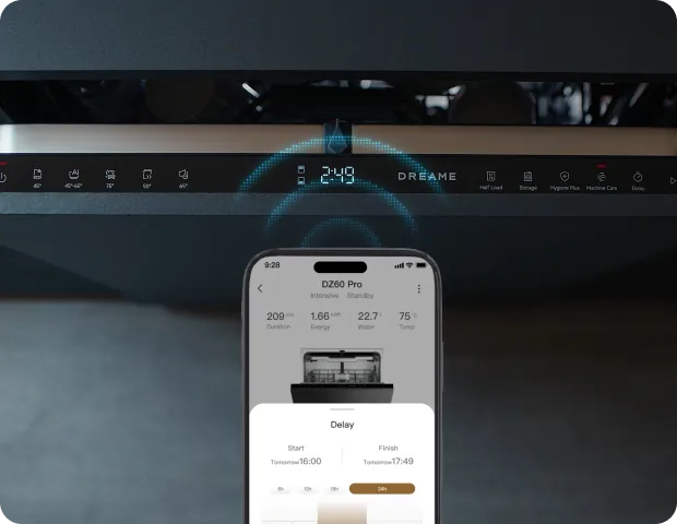 Le lave-vaisselle Dreame fonctionne à un niveau sonore faible de 42 dB(A), ce qui permet une utilisation silencieuse, même dans une cuisine ouverte ou pendant la nuit.