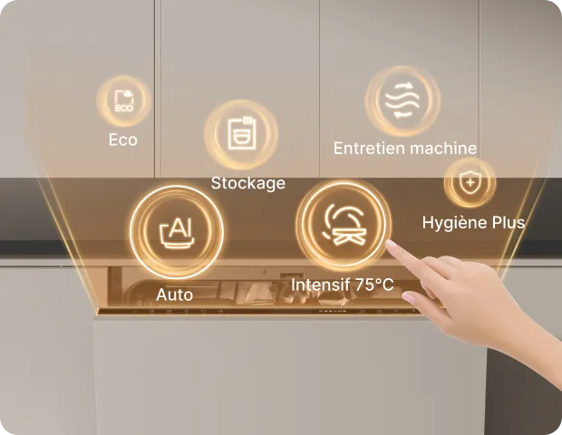 Le lave-vaisselle utilise une technologie de séchage double Dual Drying avec ouverture automatique de la porte et séchage assisté par ventilateur, combinée à une circulation d’air chaud CTP lorsque la porte reste fermée. Ce système assure un séchage complet, aussi bien de la vaisselle que de l’intérieur, éliminant les résidus d’eau. Dans les environnements humides, le flux d'air à haute température maintient l'intérieur sec et hygiénique, réduisant efficacement la prolifération bactérienne. En mode stockage, l'alternance d’air chaud et froid préserve la fraîcheur jusqu’à 15 jours.
