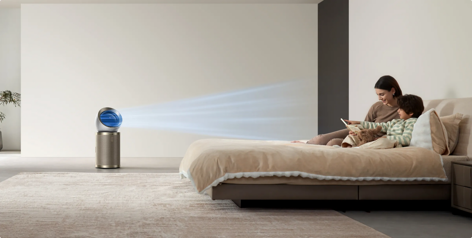 Profitez d'un flux d'air réglable adapté à tous les membres de votre foyer. Avec une personne, l'air suit sa position ; avec plusieurs personnes, il circule intuitivement d'un côté à l'autre*, pour une couverture de surface équilibrée et optimale.