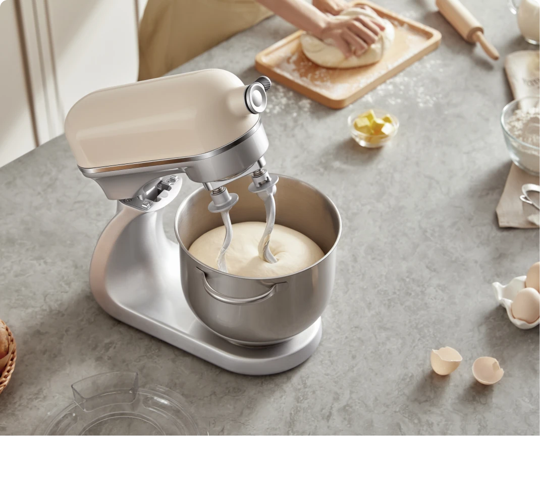 Mélangez jusqu'à 1,5 kg* de farine en une seule fois, idéal pour les repas en famille et les réceptions. Gagnez du temps et économisez vos efforts pour vous concentrer sur le plaisir de la pâtisserie.