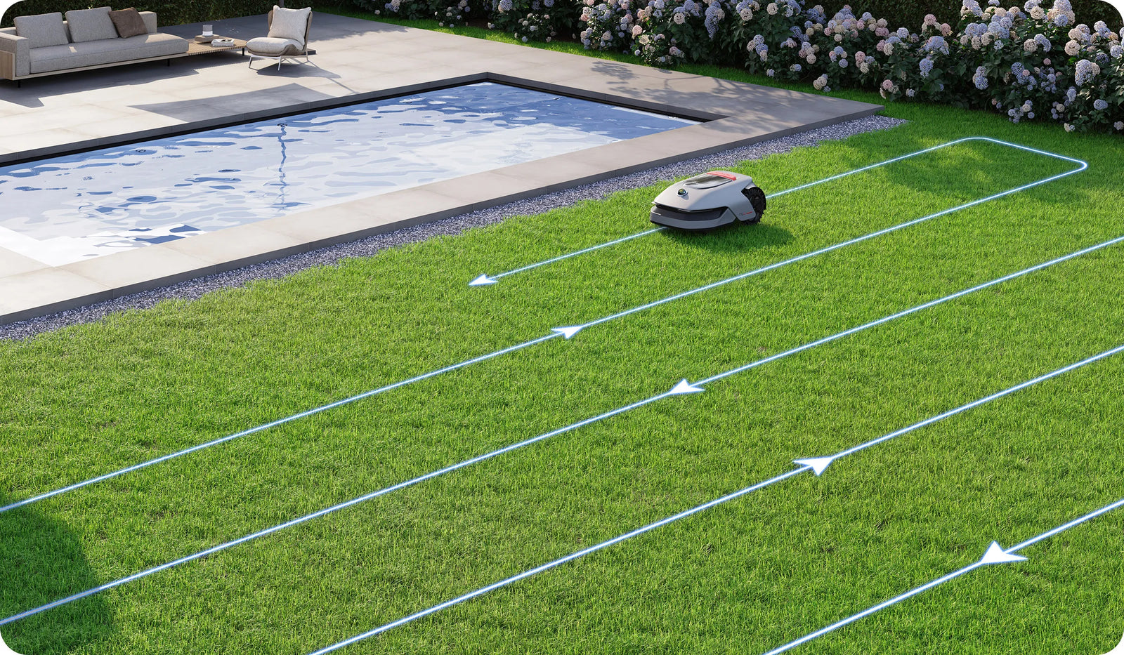 Que ce soit en mode bordure, par zones ou toute zone, A1 Pro se dirige automatiquement jusqu’aux bordures désignées, garantissant une tonte précise de bordures pour obtenir des limites de pelouses nettes et impeccables.