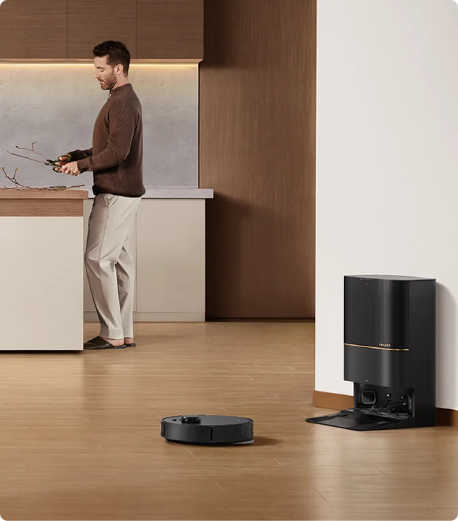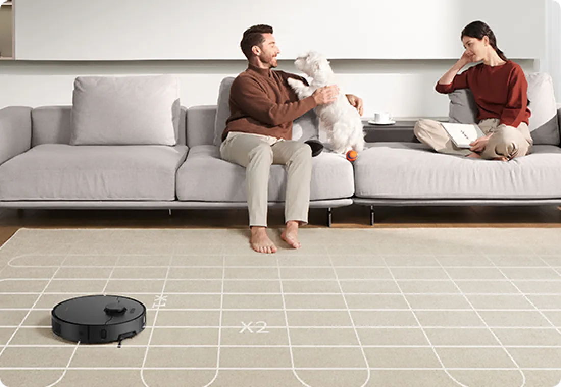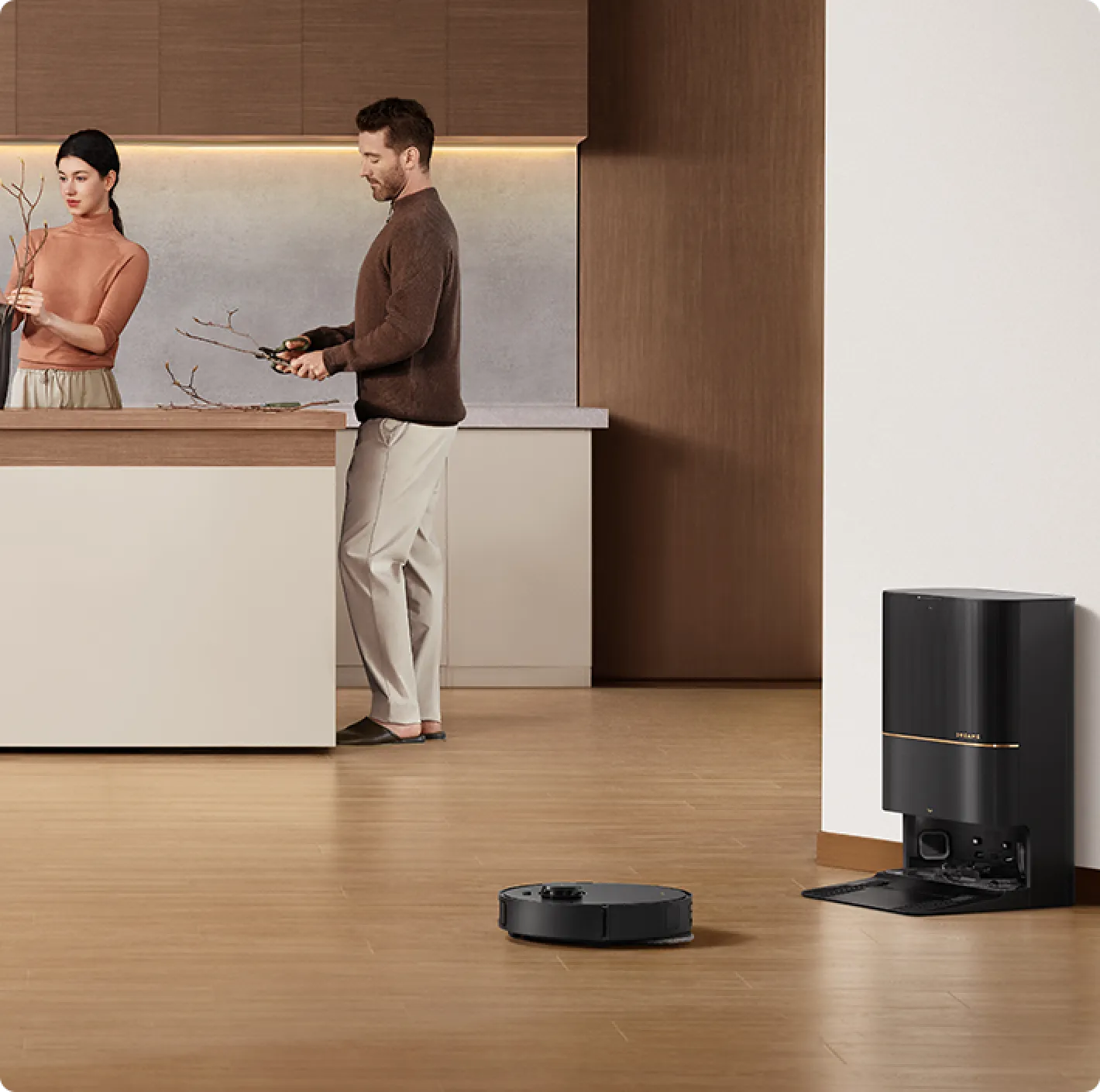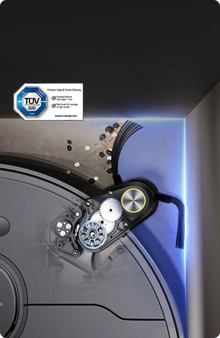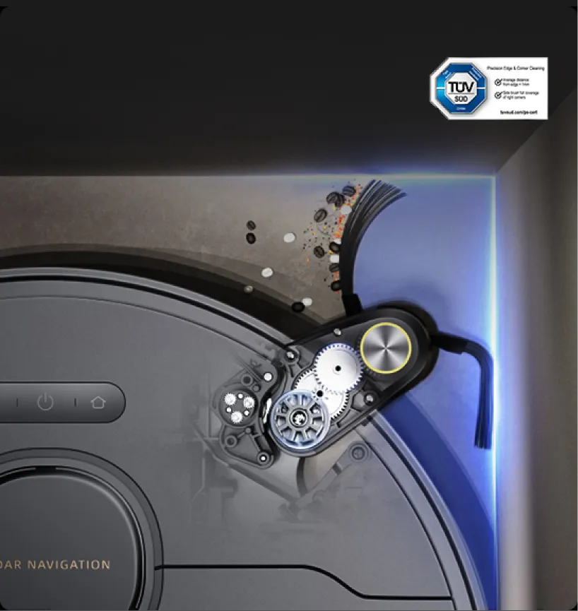 Le X40 Ultra Complete détecte la saleté et ajuste sa méthode de nettoyage en conséquence, du nettoyage intensif de la poussière à l'élimination des taches tenaces comme la sauce soja. Avec une brosse latérale relevable pour éviter la propagation des contaminants, l'aspirateur garantit un lavage précis et détaillé à une vitesse plus lente.*