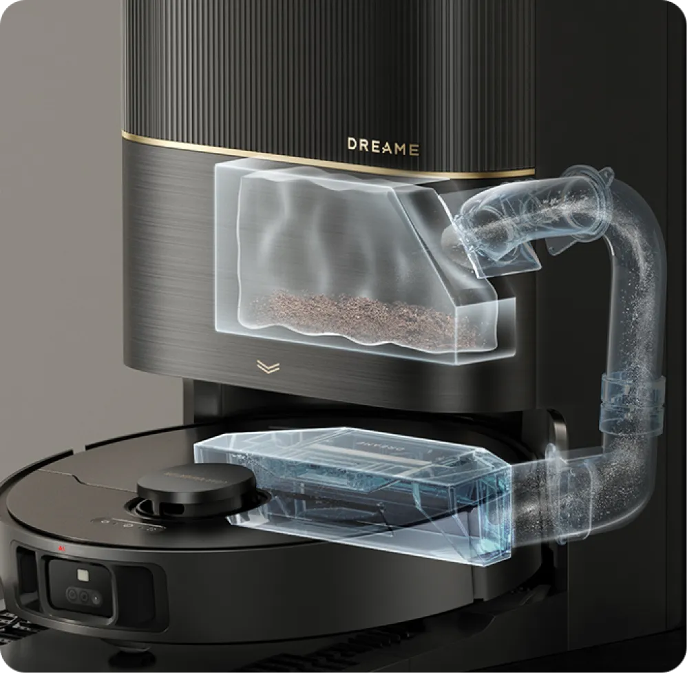 4. 12 000 Pa : d'après des tests effectués dans le laboratoire de Dreame. Les performances réelles peuvent varier en fonction de l'utilisation.