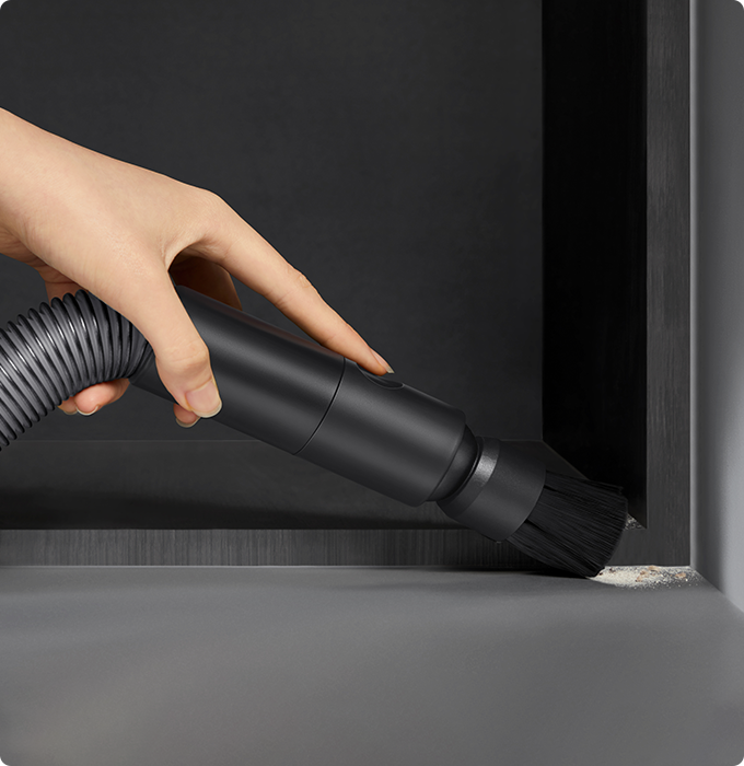 *7 mm : Basé sur nos données de laboratoire internes. La distance entre le côté droit du rouleau-brosse et le mur est de 7 mm.