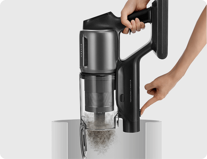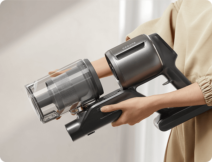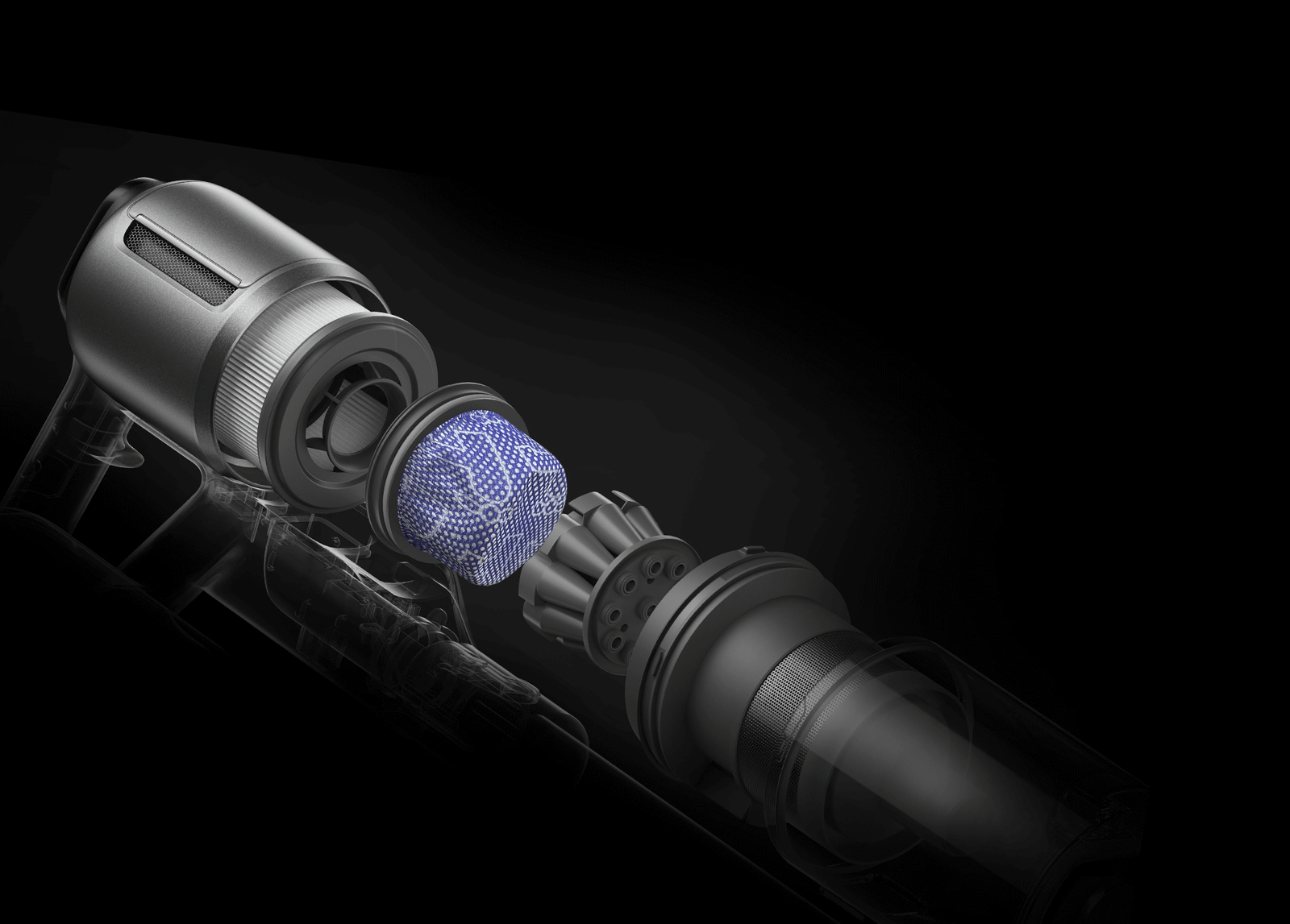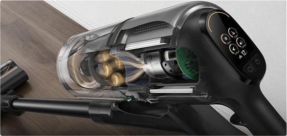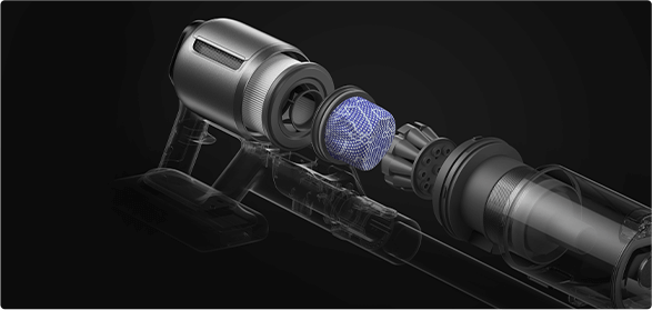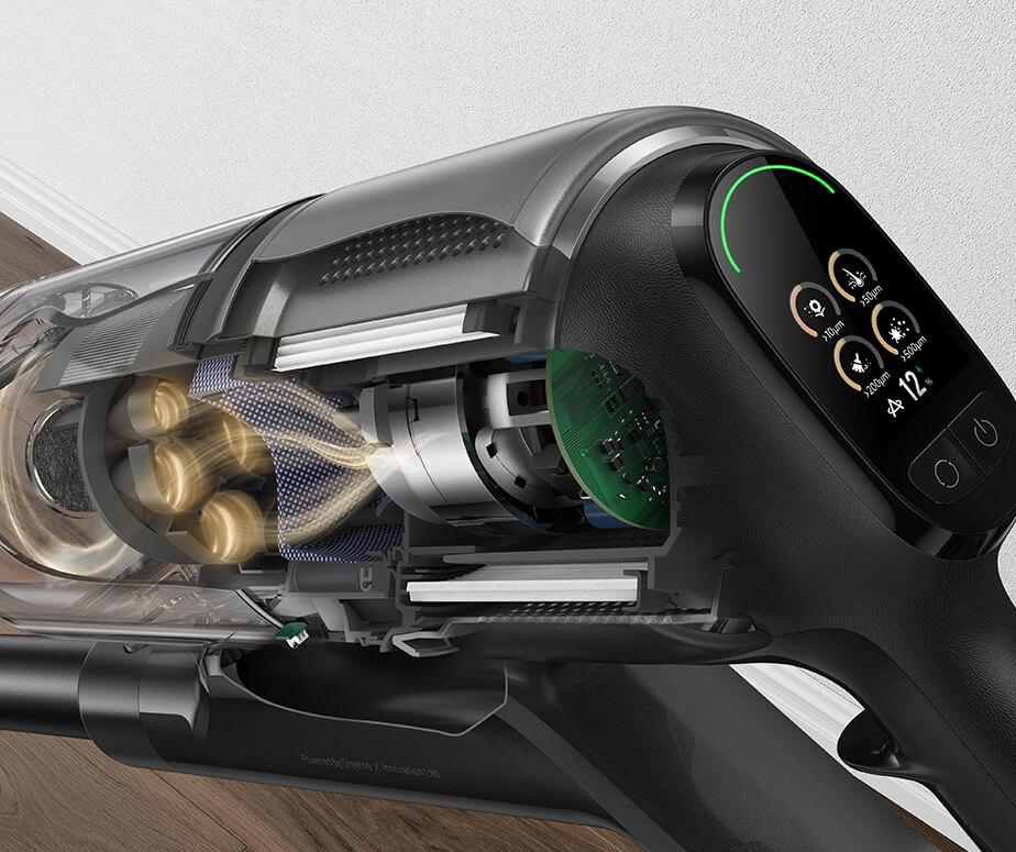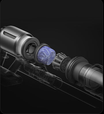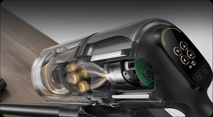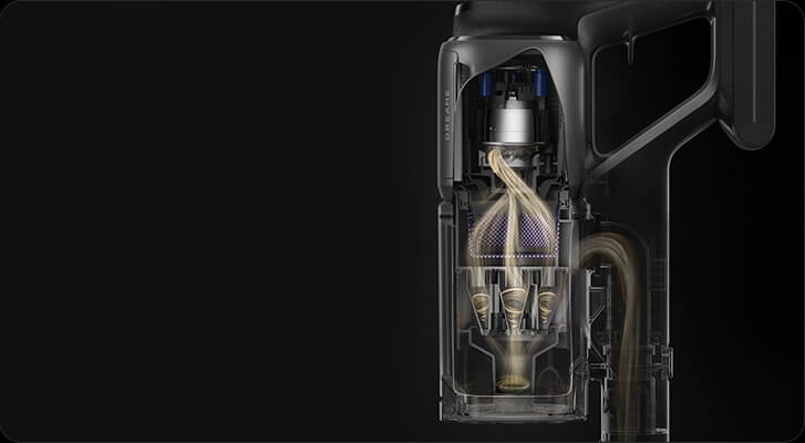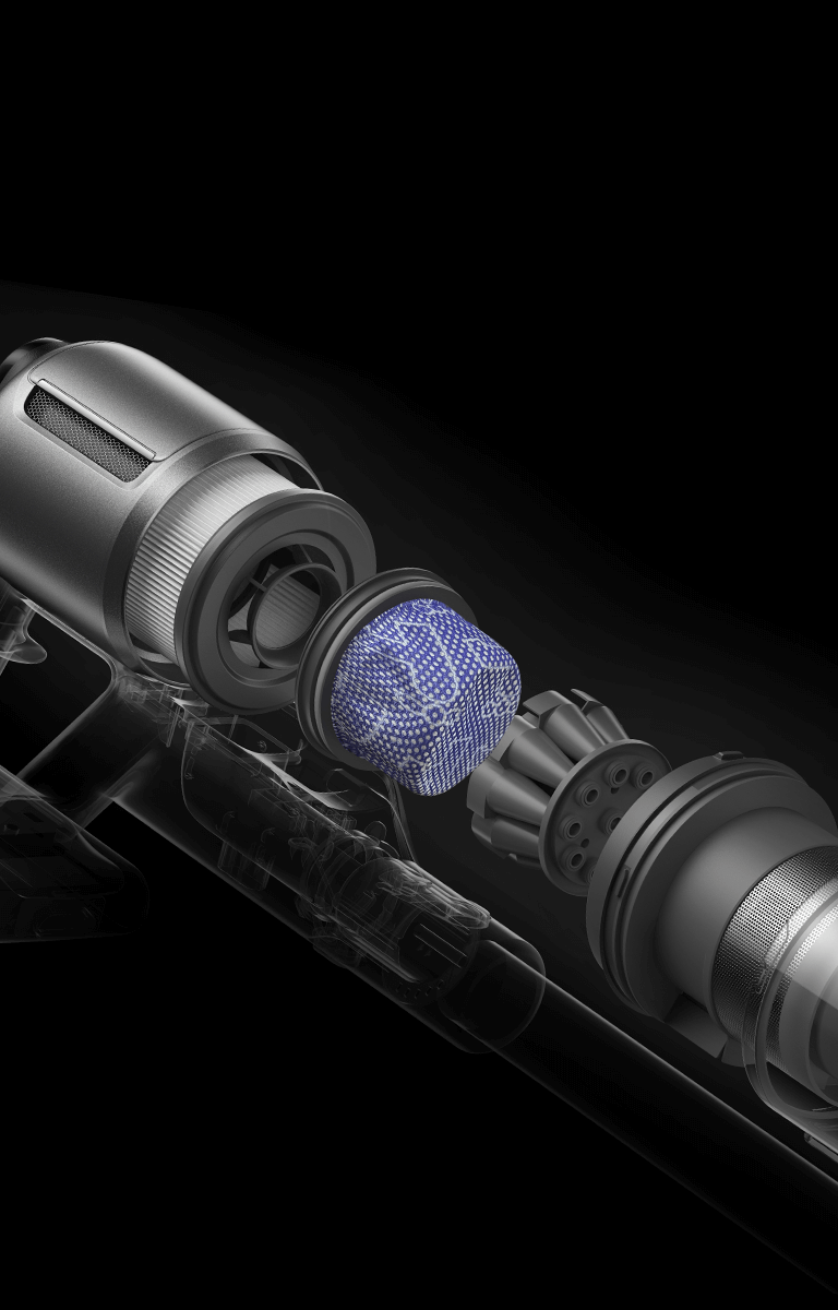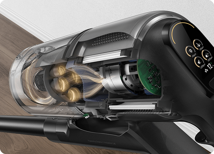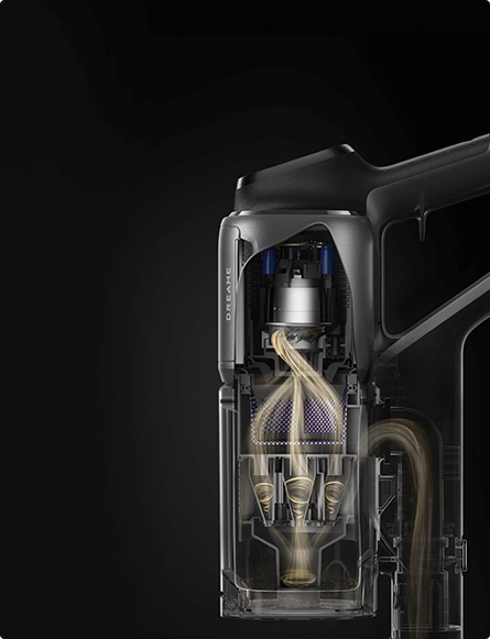 *310AW, 150 000 RPM : Sur la base de nos données en laboratoire internes, les performances réelles peuvent varier. La puissance d'aspiration de 310AW, qui est la valeur la plus élevée de la gamme d'aspirateurs balai sans fil Dreame en mai 2024.