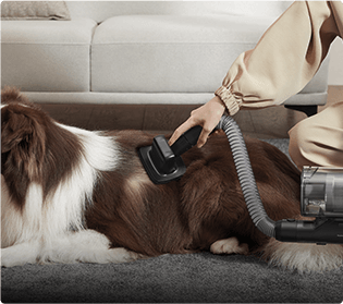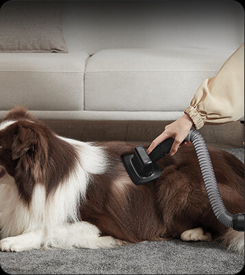 *L'outil de toilettage pour animaux de compagnie est spécialement conçu pour répondre aux types de chien et de chat à poils moyens à longs. Avant de commencer le processus d'aspiration après le peignage, il est conseillé que vos animaux de compagnie soient maintenus à une distance de sécurité de l'aspirateur sous tension ou se soient habitués aux bruits de l'aspirateur.